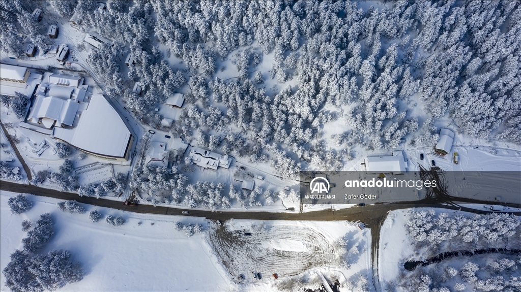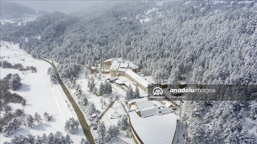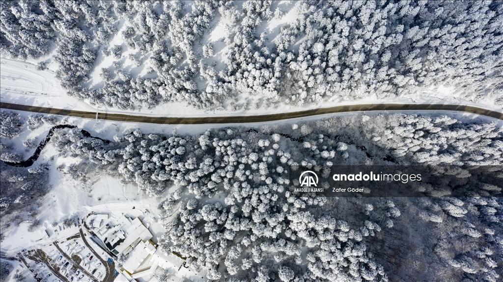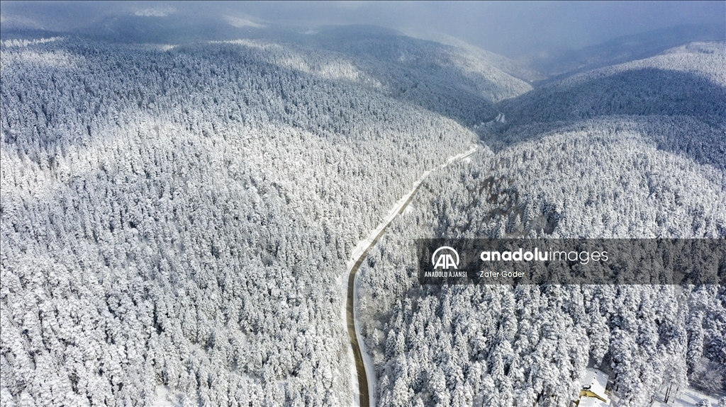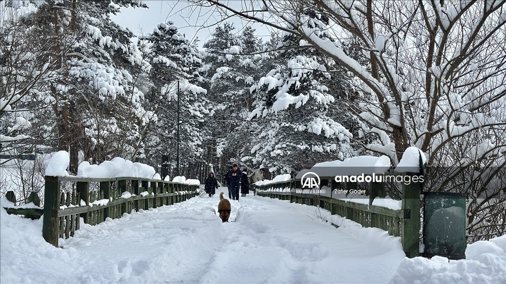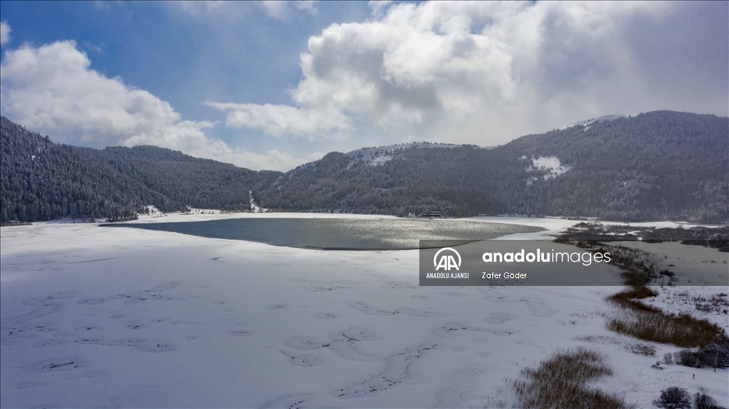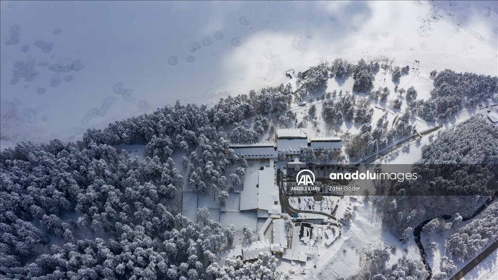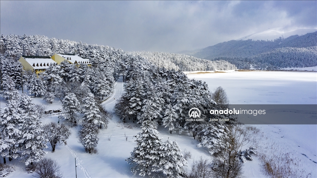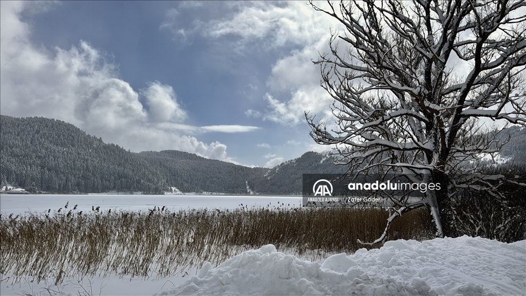 Bolu'nun doğal güzellikleriyle ünlü Abant Gölü Milli Parkı, kar yağışının ardından beyaza büründü.