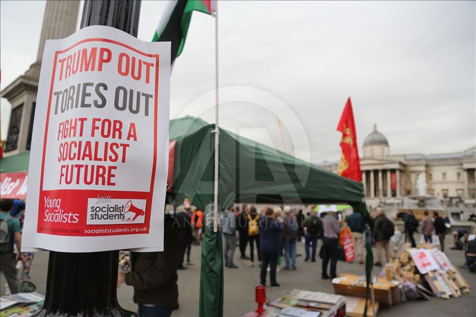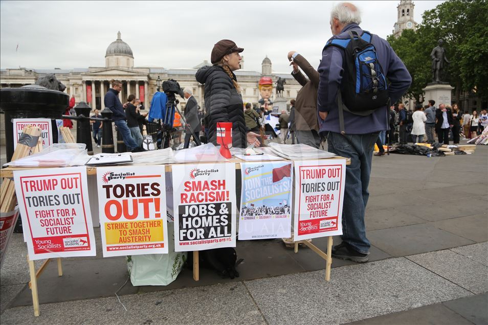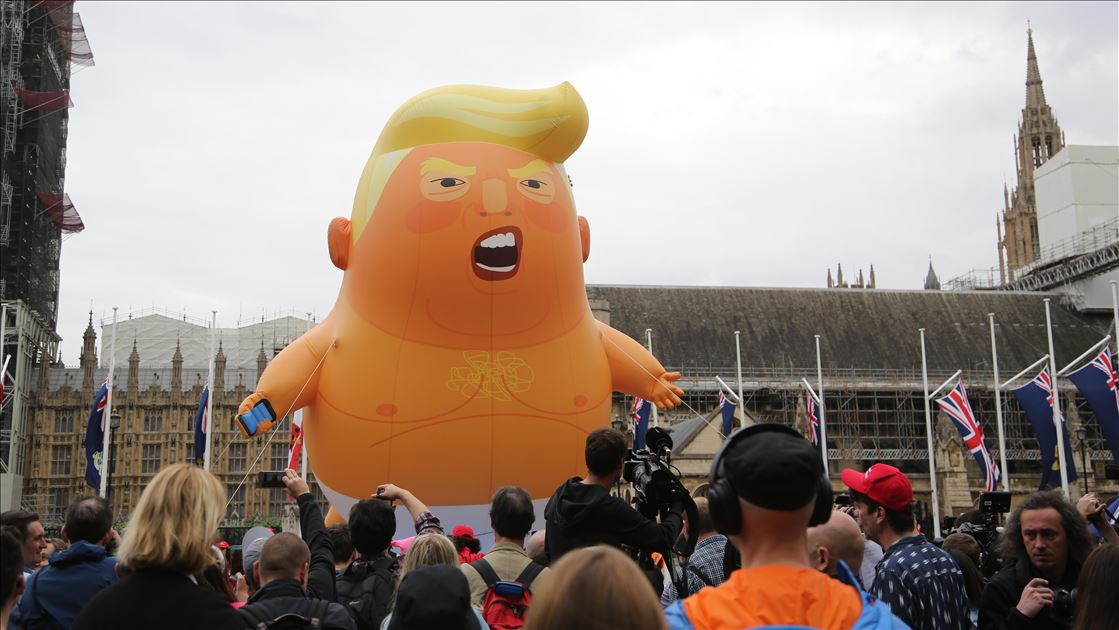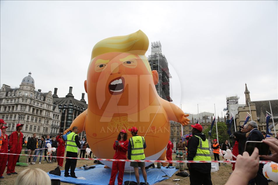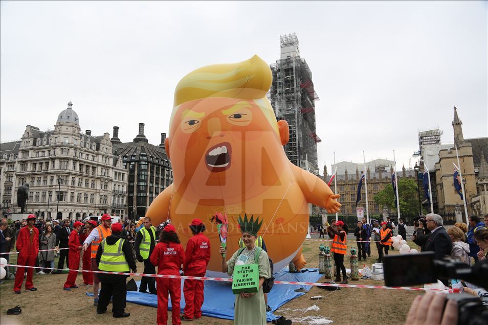İngiltere Kraliçesi 2. Elizabeth’in resmi daveti üzerine İngiltere’ye gelen ABD Başkanı Donald Trump, Londra'da protesto edildi. Trafalgar Meydanı'ndaki protestoda "bebek Trump" şeklindeki dev balon da kullandı.