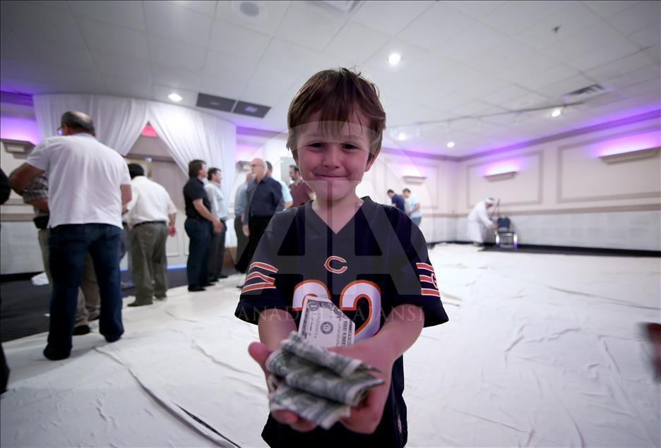 ABD'nin Chicago kentinde Türk Amerikan Kültür Derneği (TACA) tarafından düzenlenen organizasyonla Kurban Bayramı kutlandı. Hanging Garden Banquet’te gerçekleşen etkinlikte önce bayram namazı kılındı ardından da katılımcılara kahvaltı ve kavurma ikram edildi. Babası Serbülent Şimşek tarafından etkinliğe getirilen 4 yaşındaki Adyan, namazın ardından el öperek, harçlık topladı.