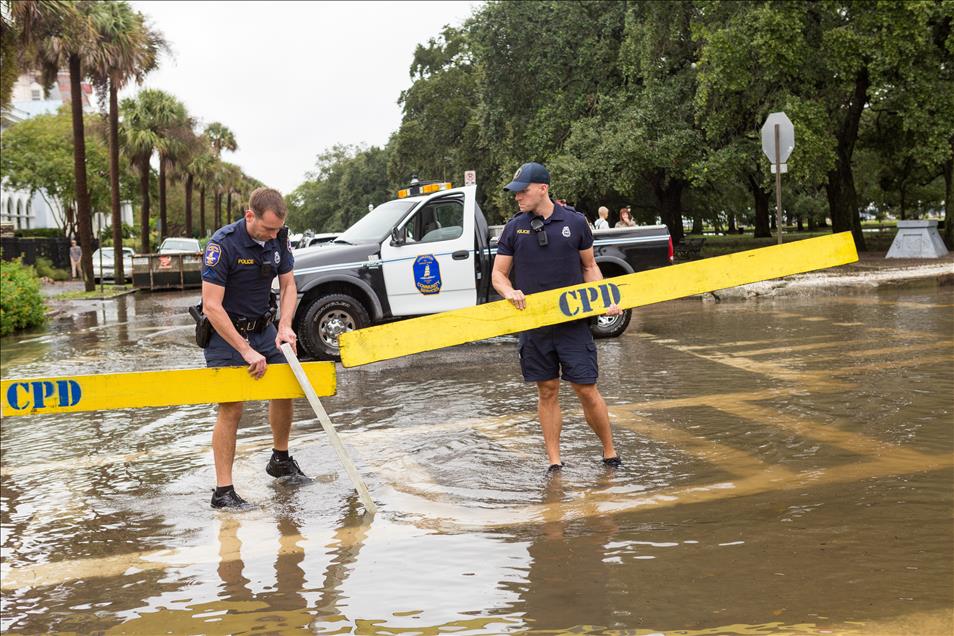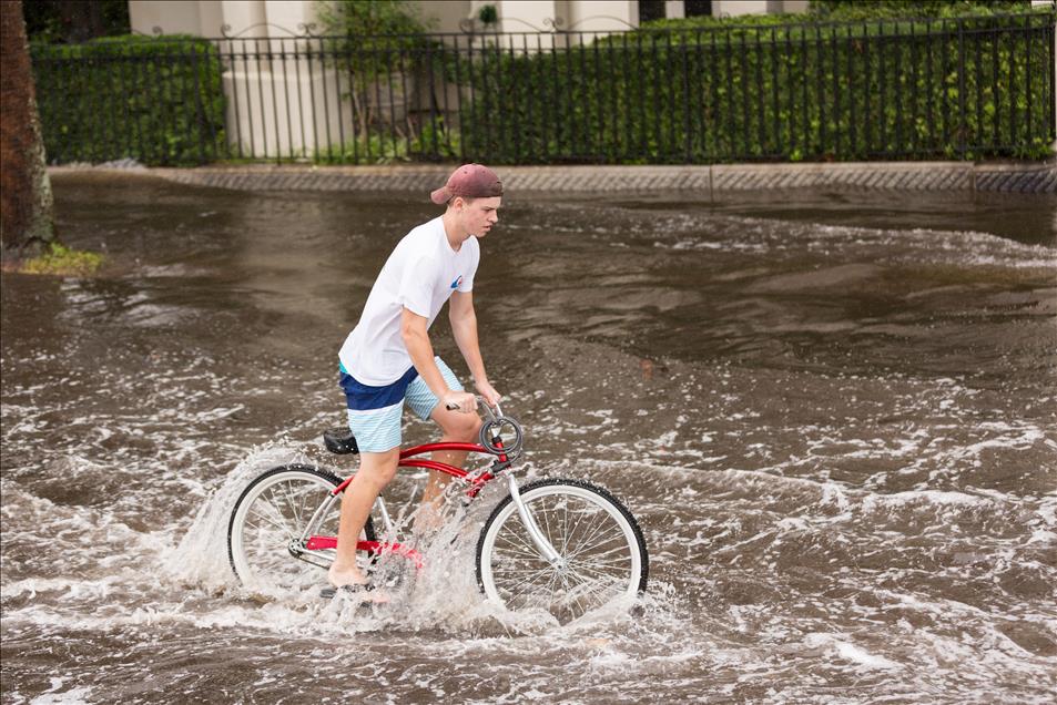 Joaquin kasırgasının etkisini arttırması ile birlikte artan yağışlar Güney Karolina'nın Charleston kentinde sele neden oldu.
