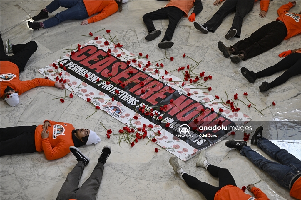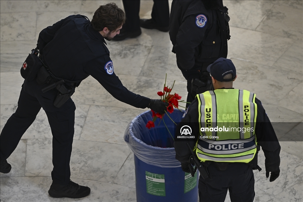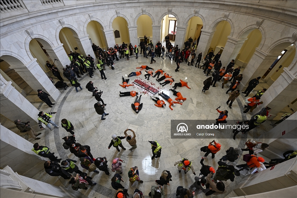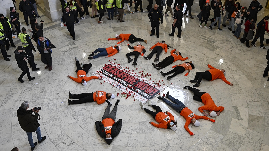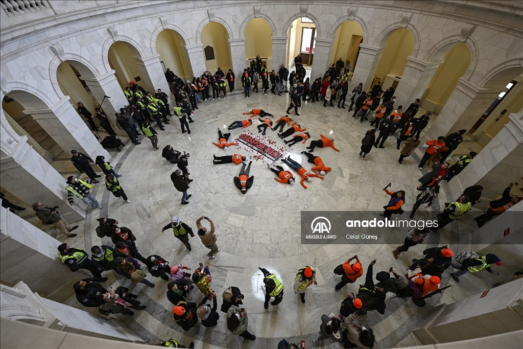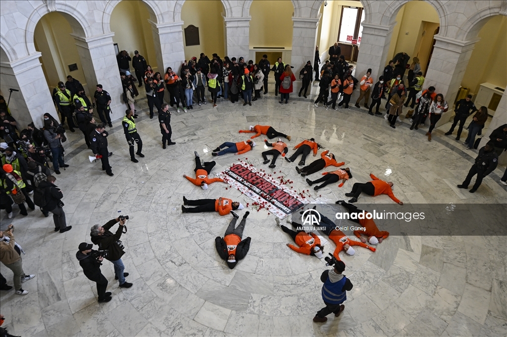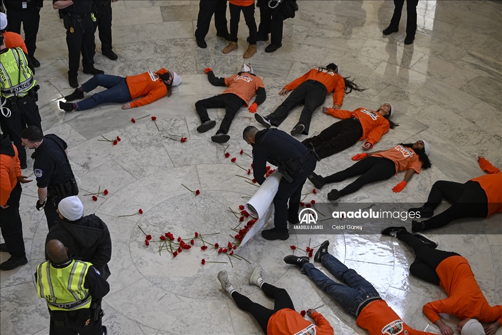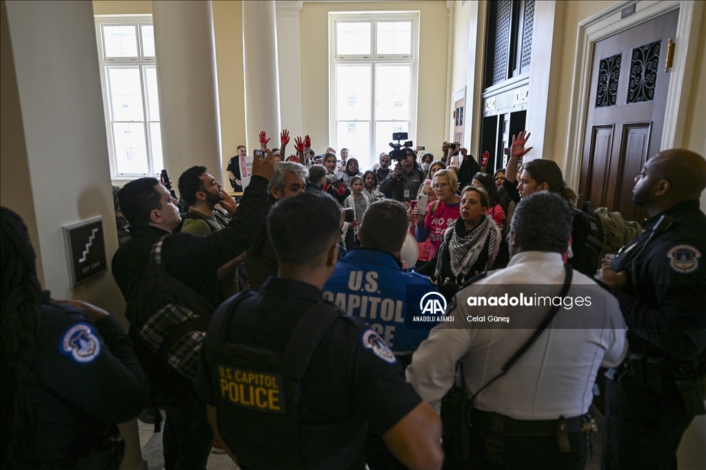 İsrail'in Gazze'de devam eden saldırılarını ve ABD yönetiminin İsrail'e askeri desteğini protesto eden bir grup gösterici, "Gazze'de acil ateşkes" talebiyle Kongre binası içinde eylem düzenledi, 13 gösterici polis tarafından gözaltına alındı.