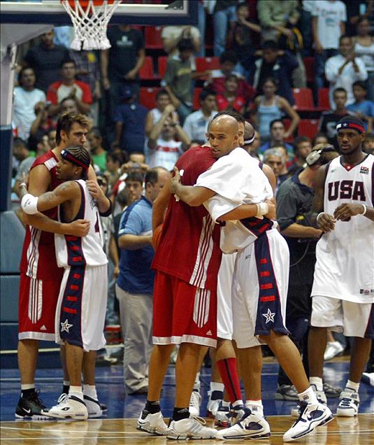 2004 ATINA OLIMPIYATLARI'NA HAZIRLANMAK UZERE ISTANBUL'DA ABD BASKETBOL MILLI TAKIMI ABDI IPEKCI DE TURKIYE BASKETBOL MILLI TAKIMIYLA KARSI KARSIYA GELDILER. (ANADOLU AJANSI-SALIH ZEKI FAZLIOGLU) (20040810) SALIH ZEKI FAZLIOGLU