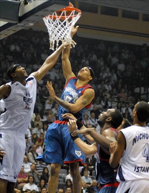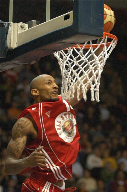 BASKETBOL FEDERASYONU TARAFINDAN DUZENLENEN ALLSTAR 2006 ORGANIZASYONUNDA TURK KARMASI ILE YABANCI KARMASI, ABDI IPEKCI SPOR SALONU'NDA KARSILASTI. MARCUS HAISLIP'IN BASKETI. (ANADOLU AJANSI-AZIZ UZUN)(20060226)AZIZ UZUN