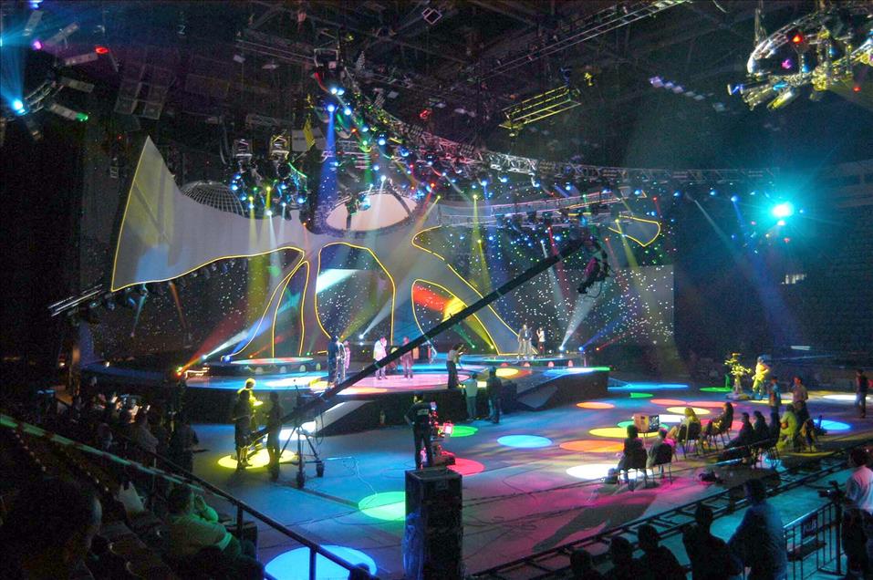 EUROVISION SARKI YARISMASINA EV SAHIPLIGI YAPACAK ABDI IPEKCI SPOR SALONU'NDA YARISMAYA KATILACAK ULKELERIN PROVALARI DEVAM EDIYOR. (ANADOLU AJANSI - METIN PALA) (20040506)METIN PALA