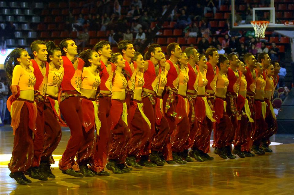 BASKETBOLDA ULEB ERKEKLER AVRUPA LIGI'NDE 2005-2006 SEZONUNUN ACILIS MACINDA ULKERSPOR ILE PANATHINAIKOS TAKIMLARI ABDI IPEKCI SPOR SALONU'NDA KARSILASTILAR. MAC ONCESI ANADOLU ATESI DANS GRUBU BIR GOSTERI YAPTI. (ANADOLU AJANSI-SALIH ZEKI FAZLIOGLU) (20051031)SALIH ZEKI FAZLIOGLU