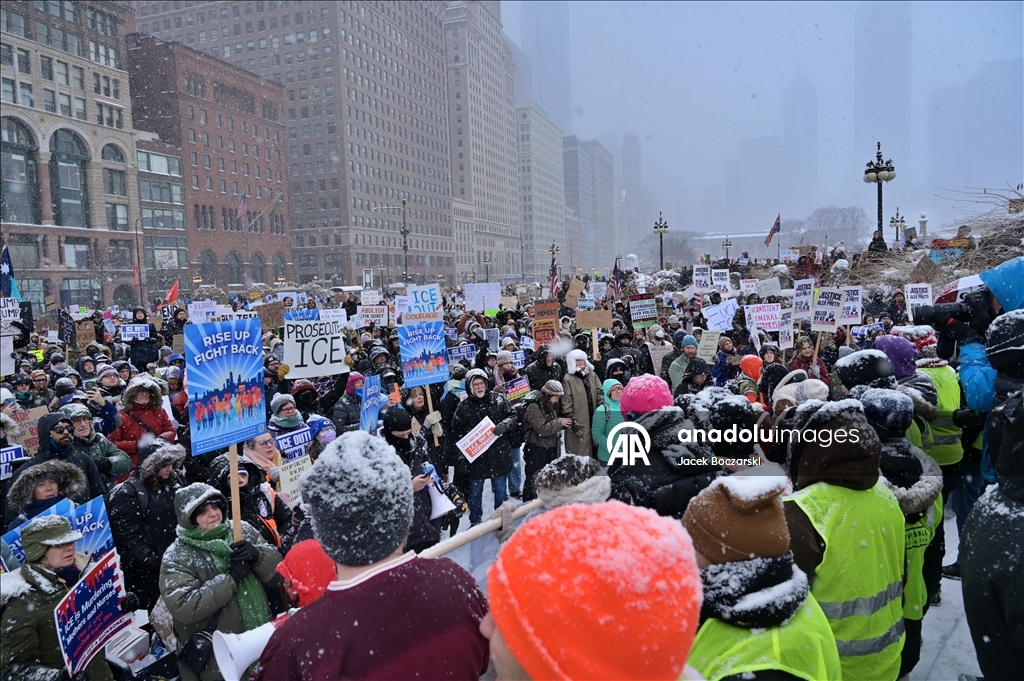 Minneapolis’te 37 yaşındaki hemşire Alex Jeffrey Pretti’nin federal ajanlar tarafından vurularak öldürülmesinin ardından ABD’nin Chicago kentinde göstericiler, yoğun kar fırtınası altında Michigan Caddesi’nde toplanarak ABD Göçmenlik ve Gümrük Muhafaza Bürosu’nu (ICE) ve Gümrük ve Sınır Koruma Bürosu’nu (CBP) protesto etti. Binlerce kişi, We Fight Back mitingine katılarak federal göçmenlik baskısının sona erdirilmesini ve bu kurumların kaldırılmasını talep etti.