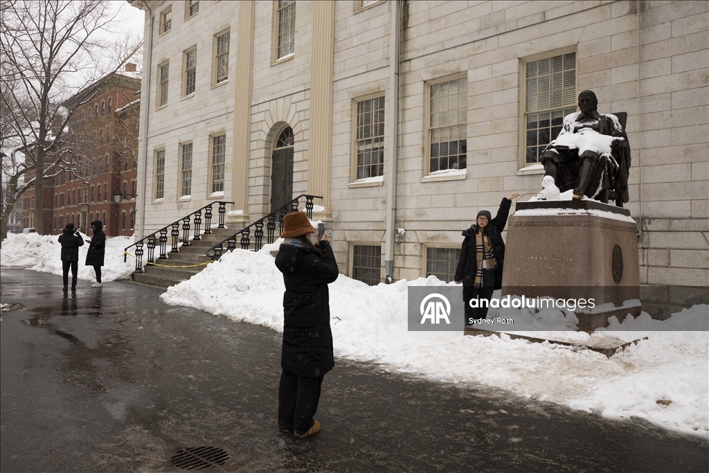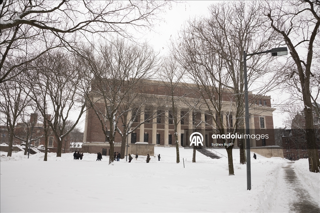 Zaman zaman kar yağışının etkisini sürdürdüğü kentte yer alan Harvard Üniversitesi kampüsü de karla kaplandı. ( Sydney Roth - Anadolu Ajansı )Sydney Roth