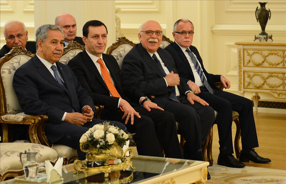 Kırım Tatar Türkleri lideri Mustafa Abdülcemil Kırımoğlu'na Cumhuriyet Nişanı tevcih töreni, Cumhurbaşkanı Abdullah Gül’ün katılımıyla Çankaya Köşkü’nde gerçekleştirildi. Törene katılan Başbakan Yardımcısı Bülent Arınç (sol) duygusal anlar yaşadı.