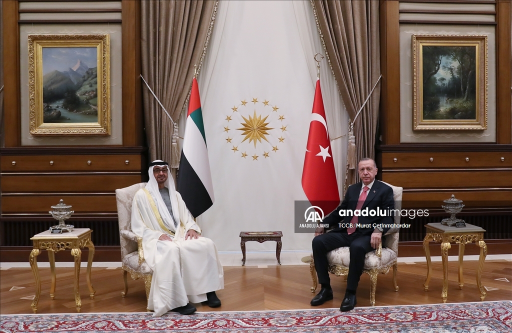 Türkiye Cumhurbaşkanı Recep Tayyip Erdoğan, Cumhurbaşkanlığı Külliyesi'nde Abu Dabi Veliaht Prensi Şeyh Muhammed bin Zayed Al Nahyan ile görüştü. Baş başa ve heyetler arası görüşmelerin ardından Cumhurbaşkanı Erdoğan ve Abu Dabi Veliaht Prensi Şeyh Muhammed bin Zayed Al Nahyan nezaretinde iki ülke arasında anlaşmalar imzalandı. ( Ali Balıkçı - Anadolu Ajansı )Ali Balıkçı
