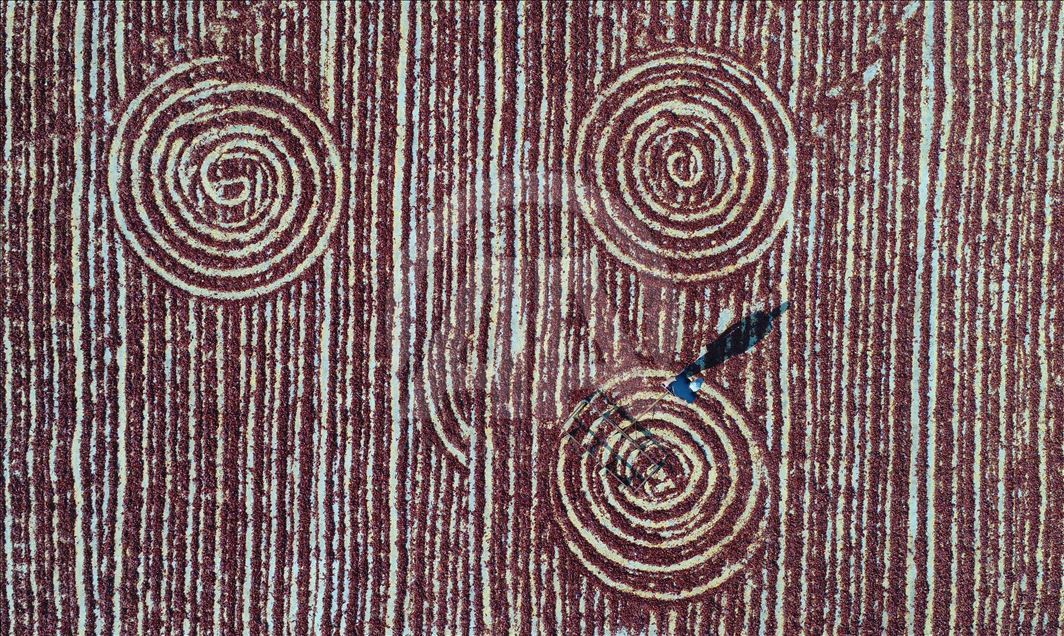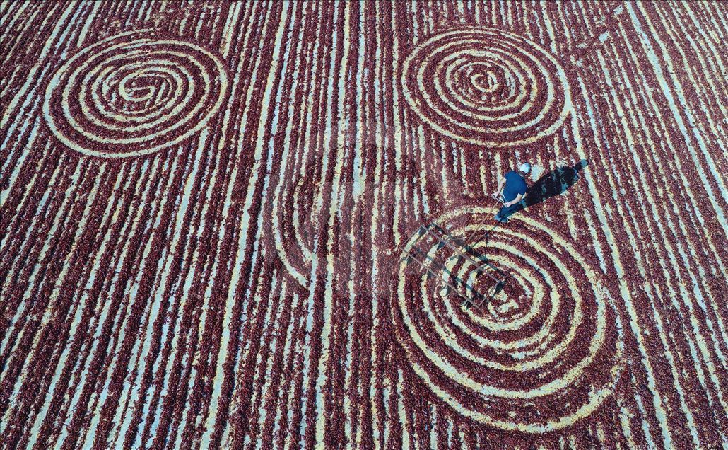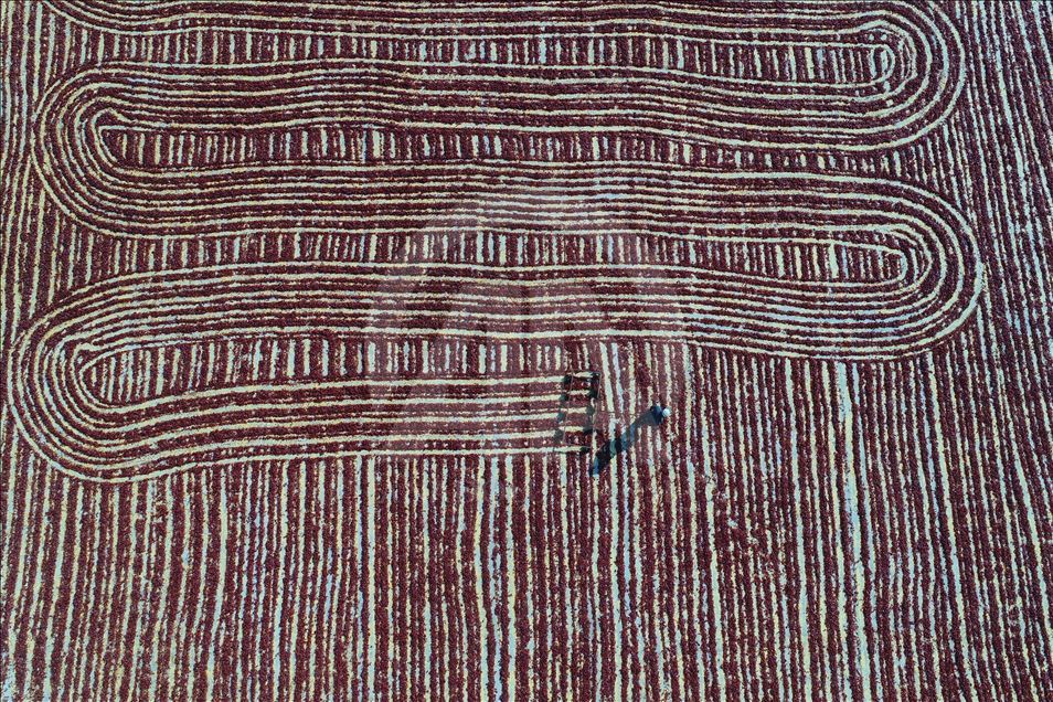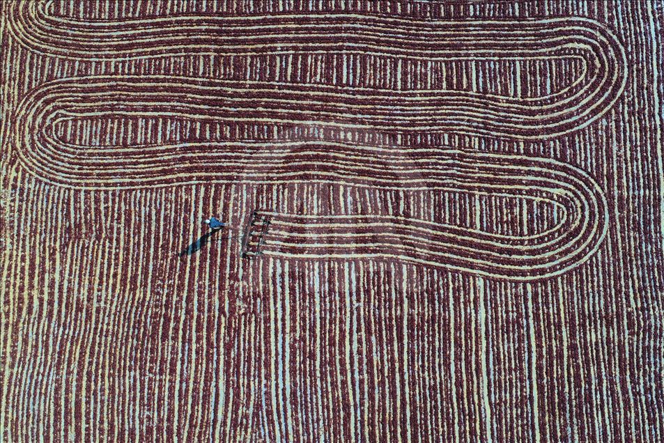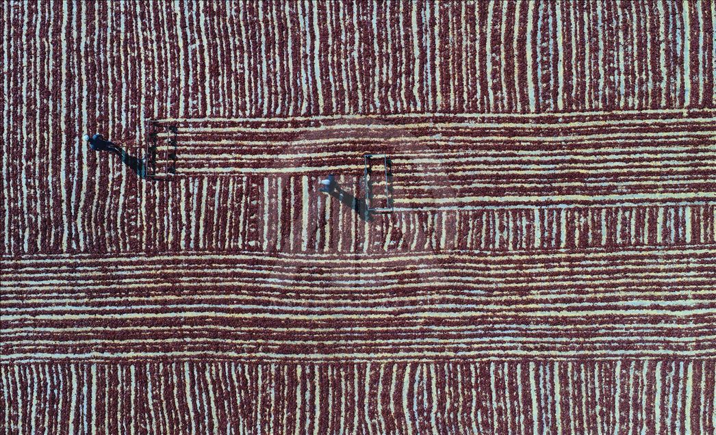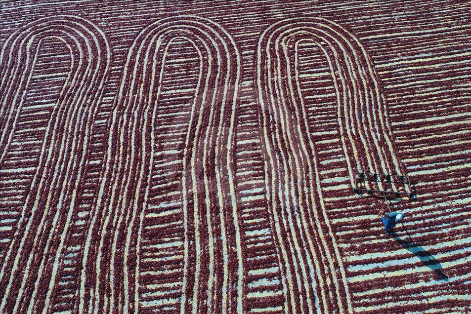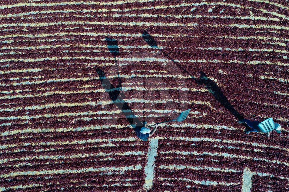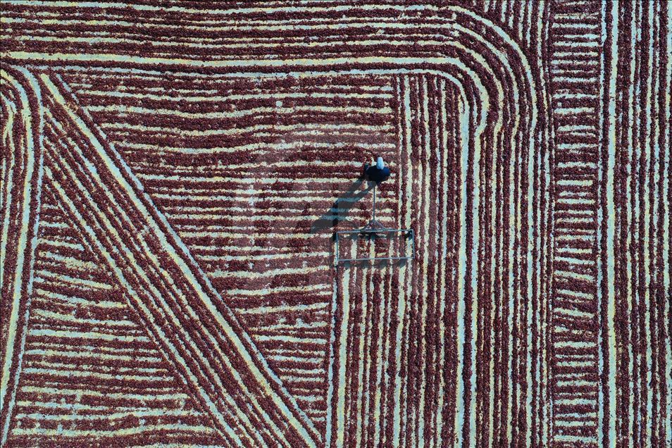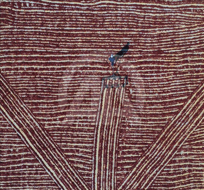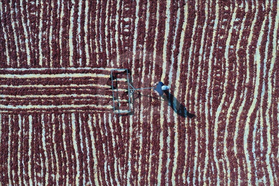 Gaziantep'in İslahiye ilçesinde tarlalardan toplanarak işleme tesislerine getirilen kırmızı biberler, işçilerin acılı elleri ile güneşin kavurucu sıcağından geçtikten sonra yemeklerin vazgeçilmezi pul bibere dönüşüyor. ( Mehmet Akif Parlak - Anadolu Ajansı )Mehmet Akif Parlak