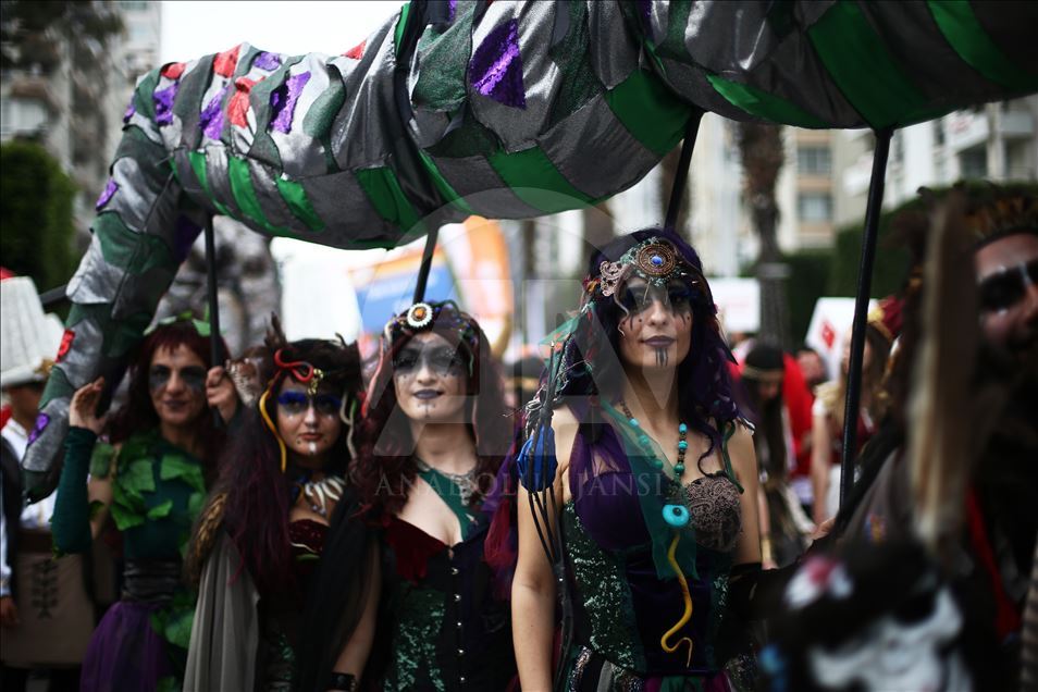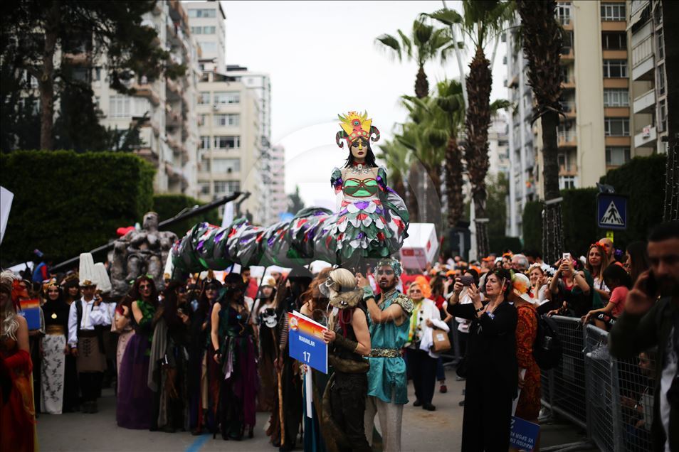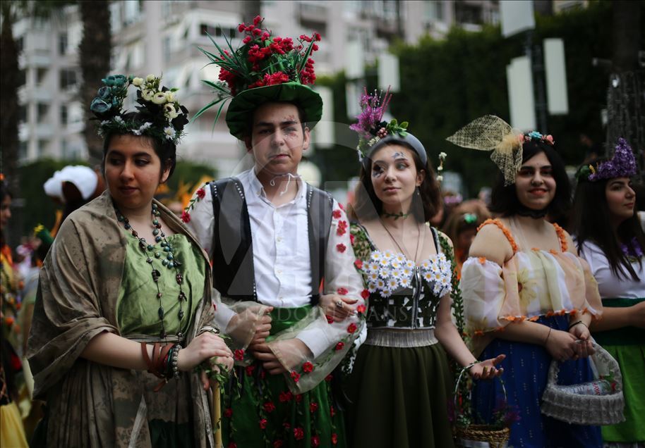 Adana'da, bu yıl 7. kez "Nisan'da Adana'da" temasıyla düzenlenen Uluslararası Portakal Çiçeği Karnavalı, kortej yürüyüşü ve açılış töreniyle başladı. Çeşitli kostümler giyen ve portakal çiçeği temasına uygun aksesuarlar takan kortejdeki katılımcılar renkli görüntüler oluşturdu. ( İbrahim Erikan - Anadolu Ajansı )İbrahim Erikan
