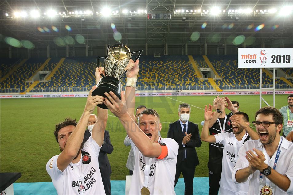 TFF 1. Lig play-off final maçında Adana Demirspor'a penaltılarda 6-5 üstünlük sağlayarak Süper Lig'e yükselen Fatih Karagümrük, düzenlenen törende kupasına kavuştu. ( Gençlik ve Spor Bakanlığı - Anadolu Ajansı )Gençlik ve Spor Bakanlığı