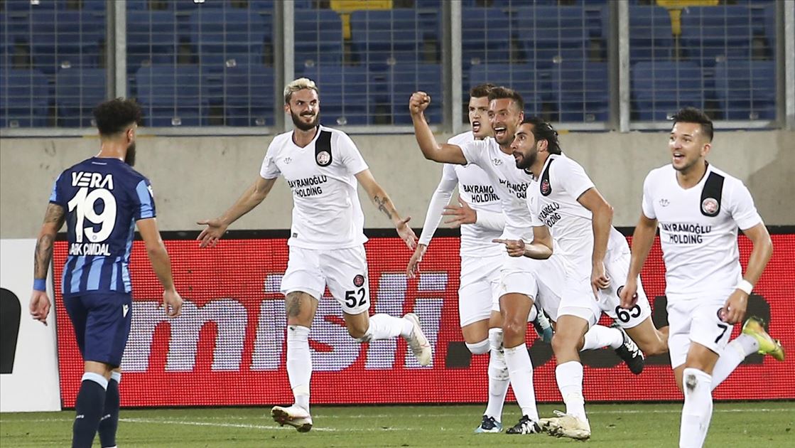 TFF 1. Lig play-off finalinde Adana Demirspor ile Fatih Karagümrük, Eryaman Stadı'nda karşılaştı. Fatih Karagümrüklü oyuncular gol sonrası sevinç yaşadı. ( Emin Sansar - Anadolu Ajansı )Emin Sansar