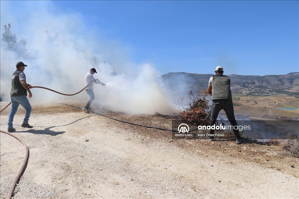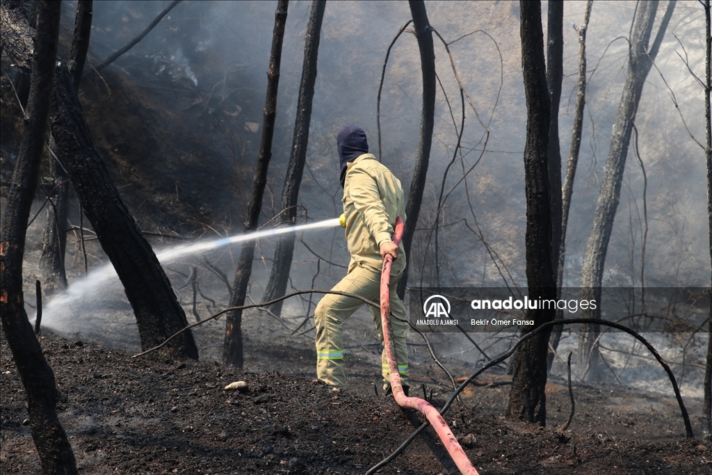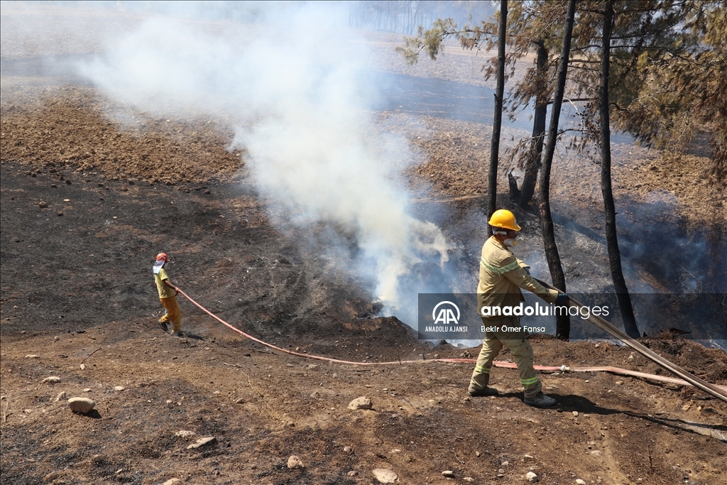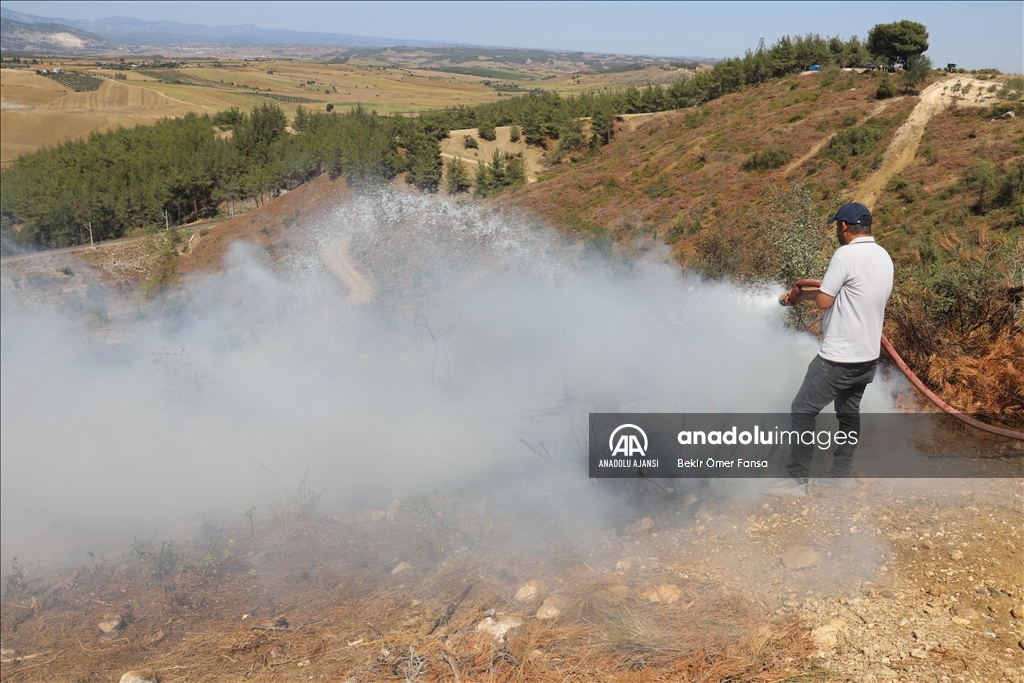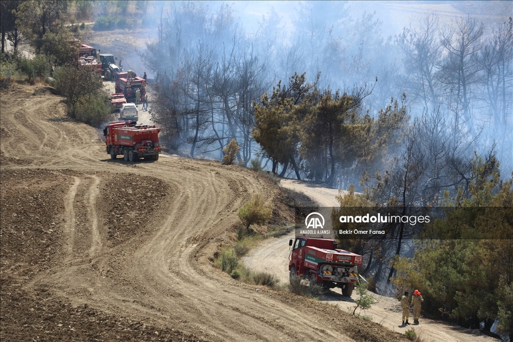 Adana'nın Karaisalı ilçesinde çıkan orman yangını, havadan ve karadan müdahaleyle kontrol altına alındı. Orman Bölge Müdürü Mahmut Yılmaz da (sağda) söndürme çalışmalarını takip etti. ( Bekir Ömer Fansa - Anadolu Ajansı )Bekir Ömer Fansa
