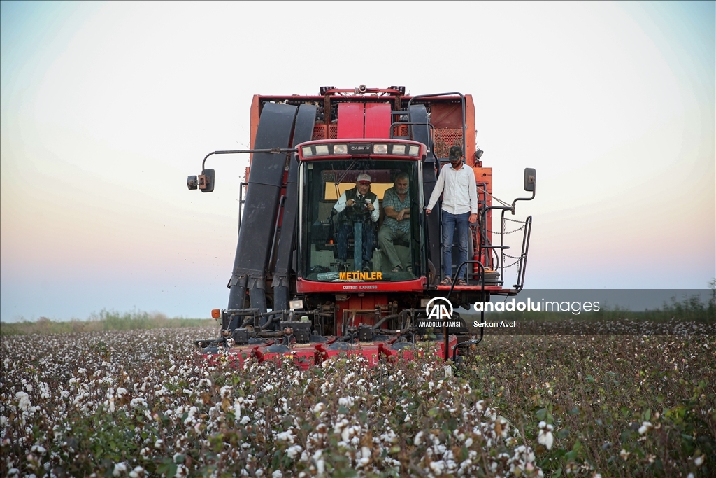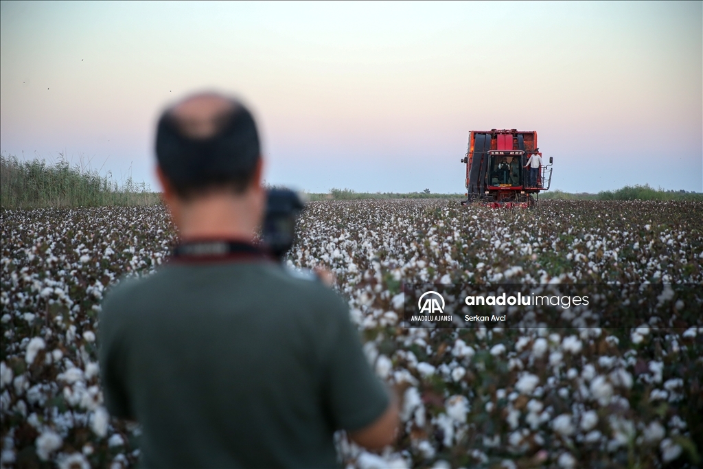 Adana'nın Karataş ilçesi Yemişli Mahallesi'ndeki pamuk tarlasında hasat etkinliği düzenlendi. ( Serkan Avci - Anadolu Ajansı )Serkan Avci