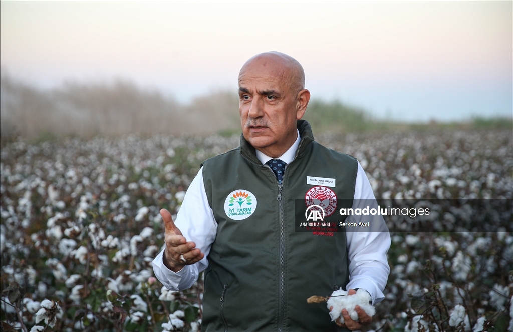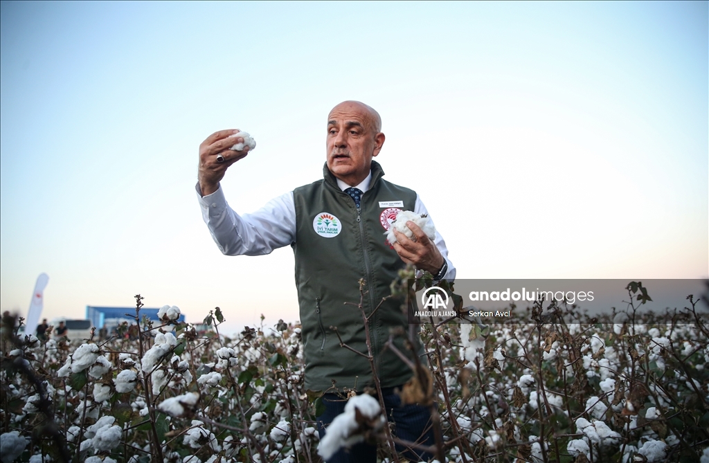 Adana'nın Karataş ilçesi Yemişli Mahallesi'ndeki pamuk tarlasında hasat etkinliği düzenlendi. Programa katılan Tarım ve Orman Bakanı Vahit Kirişci, pamuk hasat etti. ( Serkan Avci - Anadolu Ajansı )Serkan Avci