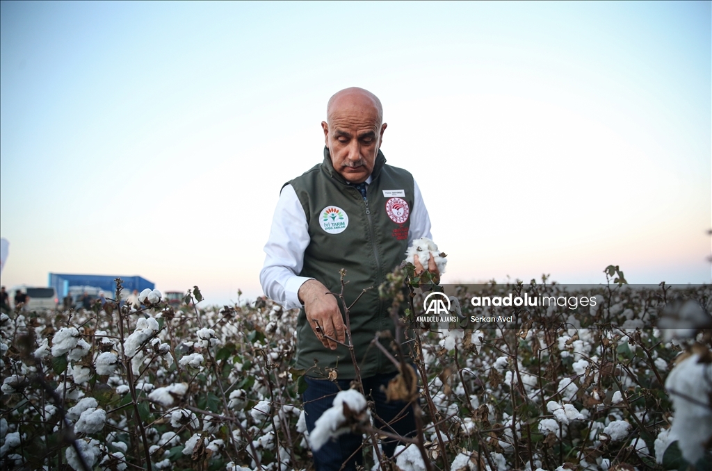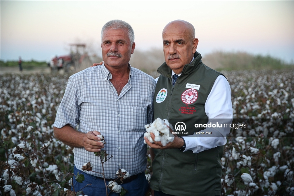 Adana'nın Karataş ilçesi Yemişli Mahallesi'ndeki pamuk tarlasında hasat etkinliği düzenlendi. Programa katılan Tarım ve Orman Bakanı Vahit Kirişci (sağda), pamuk hasat etti. ( Serkan Avci - Anadolu Ajansı )Serkan Avci