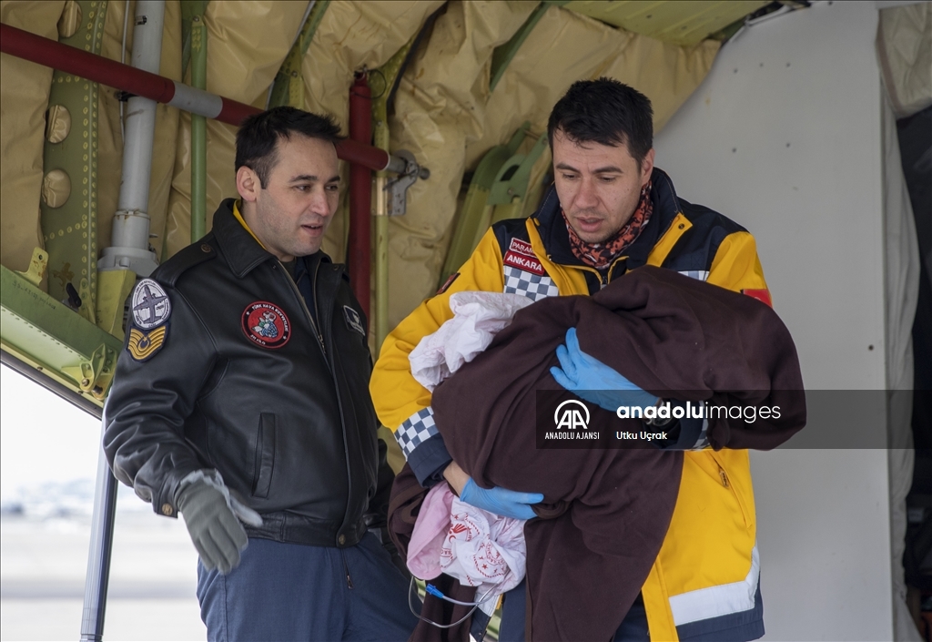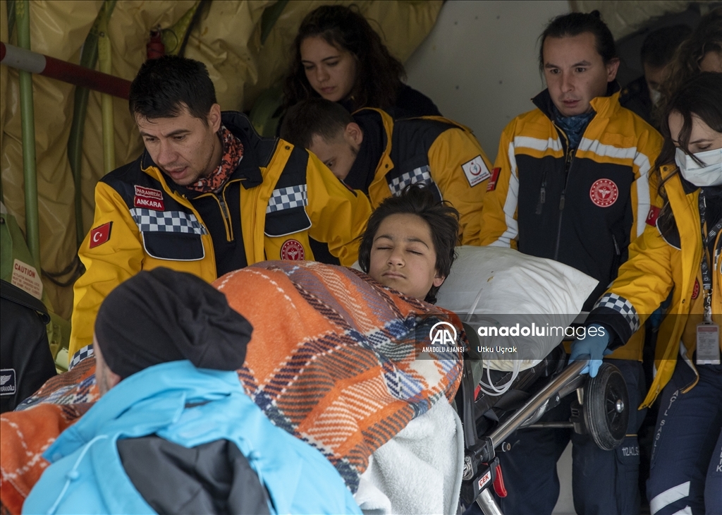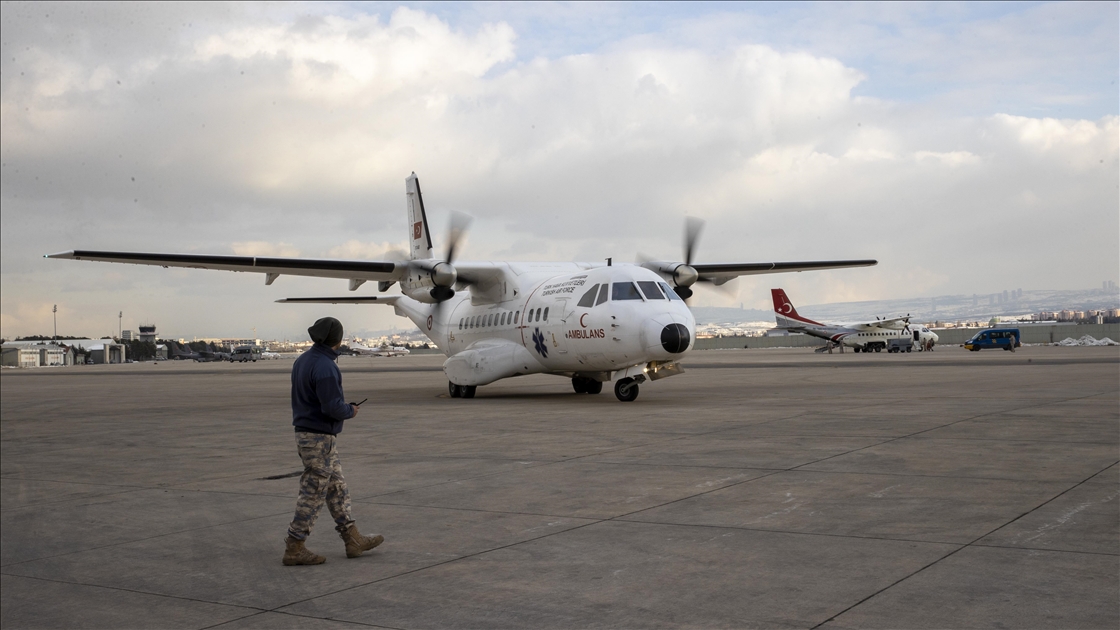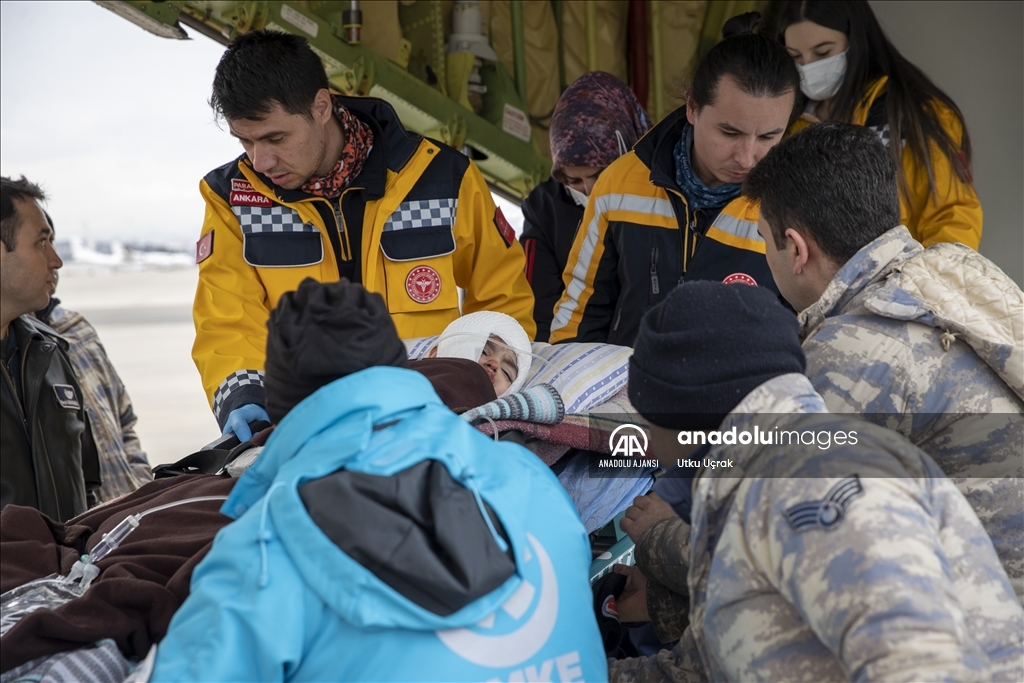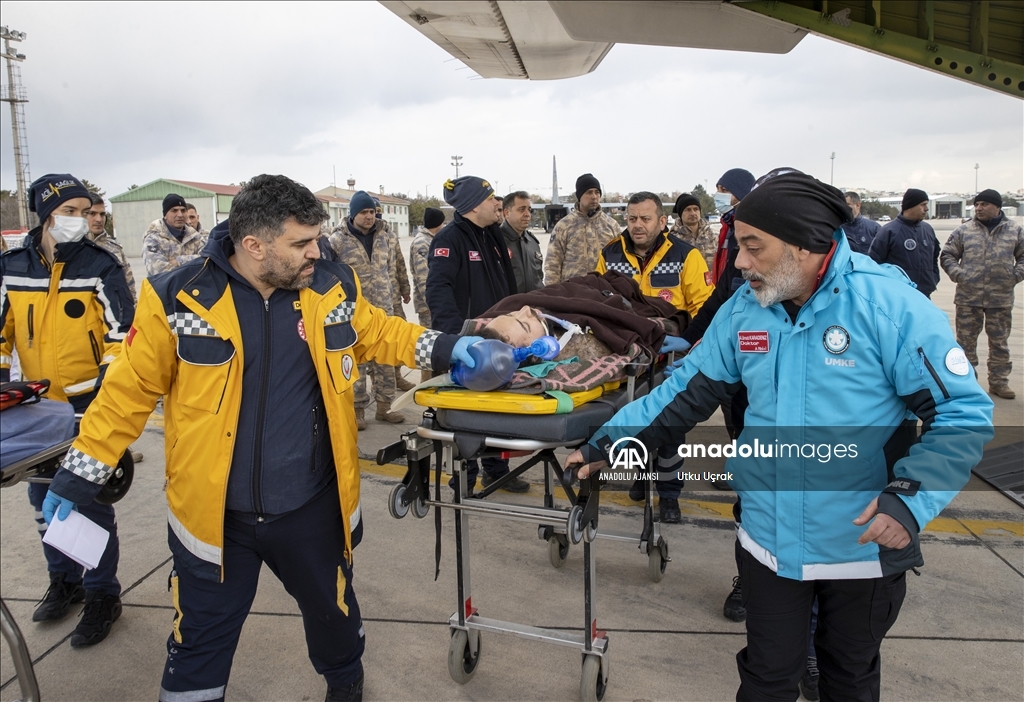 Kahramanmaraş merkezli depremlerin etkilediği Adıyaman'da yaralanan 35 afetzede daha uçaklarla Ankara'ya getirildi. Adıyaman'dan 29 depremzedeyi alan Türk Silahlı Kuvvetlerine (TSK) ait C 130 tipi uçak ile 6 depremzedeyi taşıyan Sağlık Bakanlığına ait ambulans uçak, Etimesgut Askeri Havaalanı'na indi. Depremzedeler, apronda hazır bulunan ambulanslarla tedavi altına alınmak üzere kentteki hastanelere nakledildi. ( Utku Uçrak - Anadolu Ajansı )Utku Uçrak
