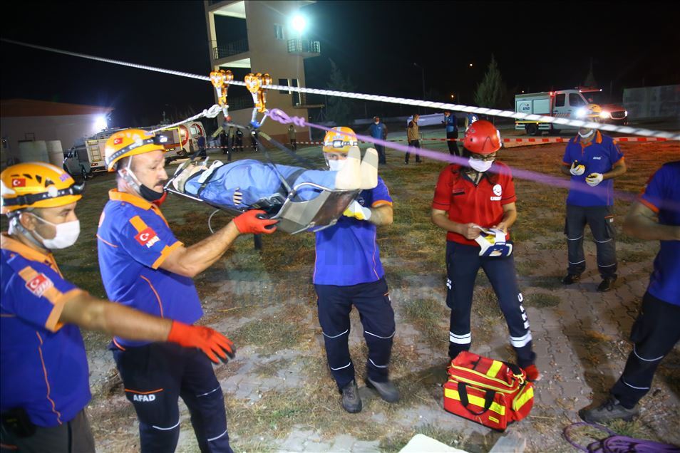 İzmir'de Afet ve Acil Durum Müdürlüğü (AFAD) ekiplerince 17 Ağustos depreminin yıl dönümü nedeniyle deprem tatbikatı yapıldı. ( AFAD - Anadolu Ajansı )AFAD