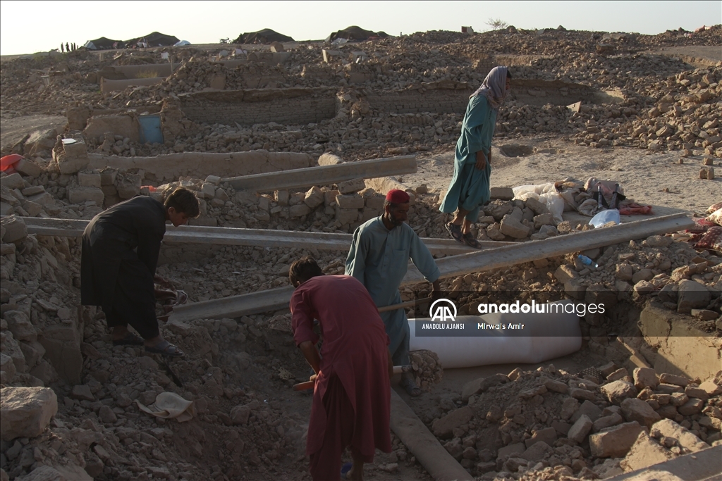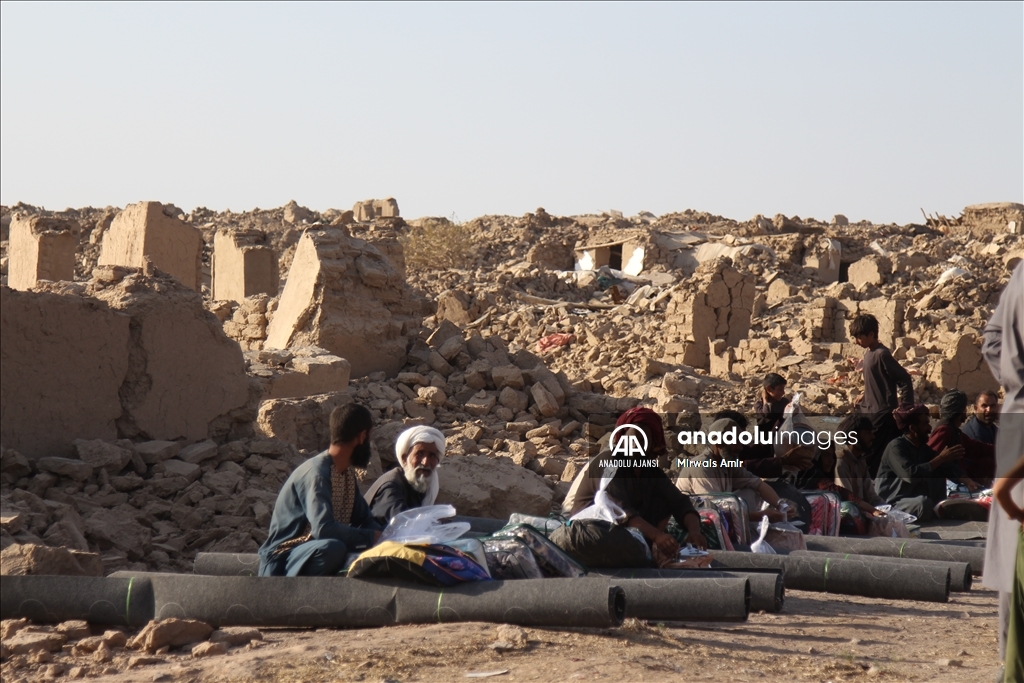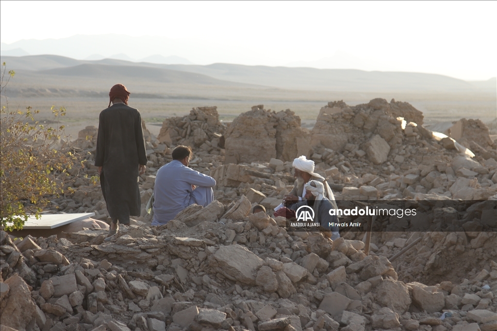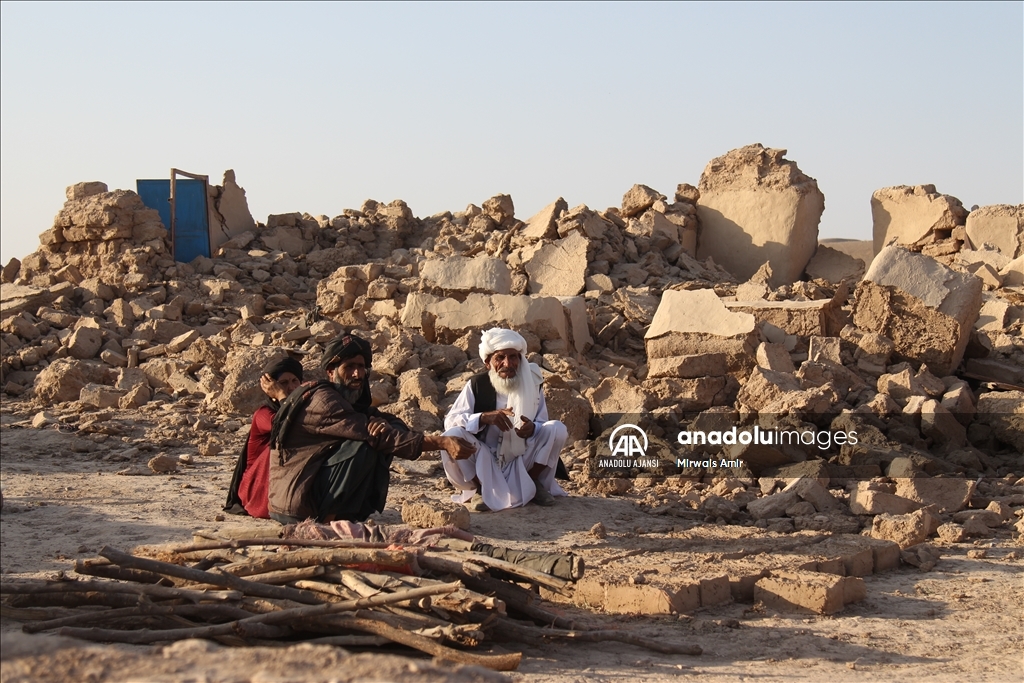 ABD Jeolojik Araştırmalar Merkezine (USGS) göre, dün Afganistan'ın batısında, İran sınırında bulunan Herat vilayetinde yerel saatle 11.00'den itibaren art arda 6,3, 5,5, 4,7, 6,3, 5,9, 4,6 ve 4,8, ardından da 4,9 büyüklüğünde çok sayıda deprem meydana gelmişti. Afganistan'ın Herat vilayeti, geçen cumartesi günü yaşanan şiddetli depremlerin ardından 6,3 ve 5 büyüklüğündeki depremlerle yeniden sarsıldı. Afganistan'ın Herat vilayetinde meydana gelen yıkıcı depremlerin ardından bölgedeki köyler neredeyse tamamen yıkıldı. Vatandaşlar, arama-kurtarma çalışmalarının ardından enkazdan kurtardıkları eşyalarıyla yaşam mücadelesi verirken, yardım bekleyişleri sürüyor. ( Mirwais Amir - Anadolu Ajansı )Mirwais Amir