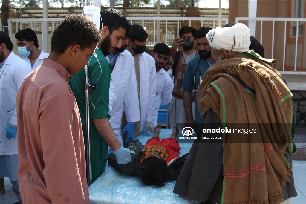 Afganistan'ın Herat vilayeti, geçen cumartesi günü yaşanan şiddetli depremlerin ardından 6,3 ve 5 büyüklüğündeki depremlerle yeniden sarsıldı. Depremde yaralanan vatandaşlar Herat Bölge İhtisas Hastanesi'nde tedavi altına alındı. Bölgede devam eden artçı sarsıntılar nedeniyle yaralılara hastane bahçesinde müdahale ediliyor. ( Mirwais Amir - Anadolu Ajansı )Mirwais Amir