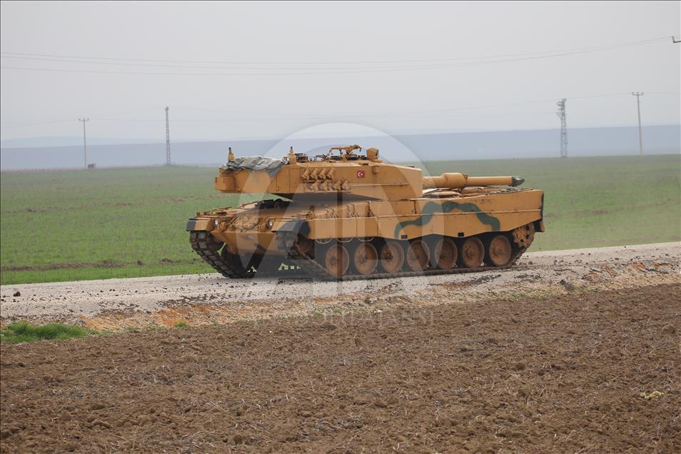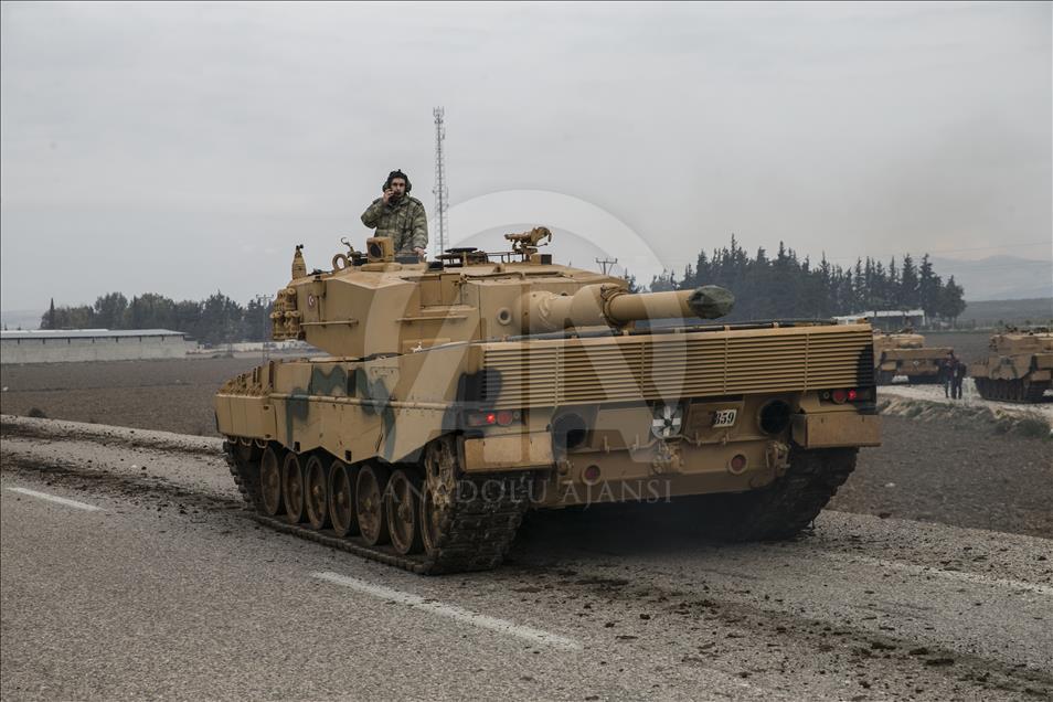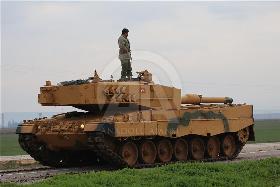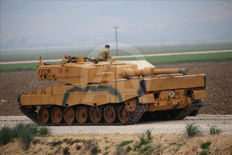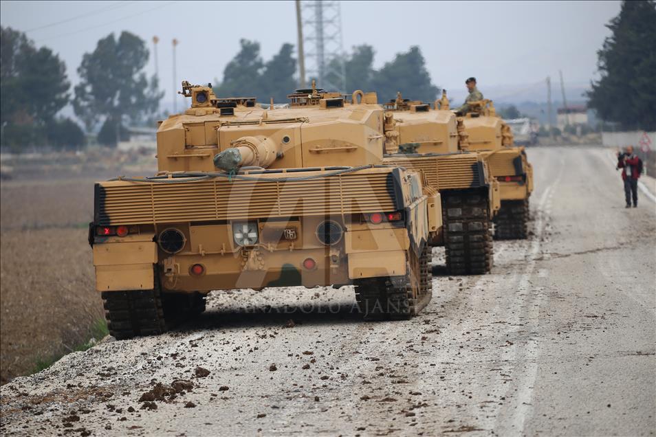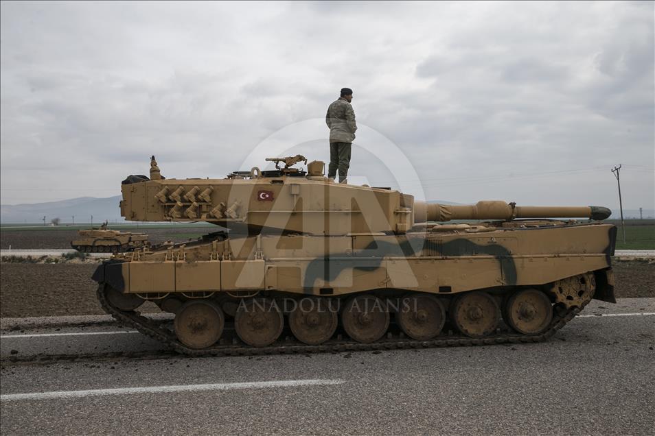 Türk Silahlı Kuvvetlerinin (TSK), Suriye'nin Afrin bölgesinde terör örgütü PYD/PKK tarafından işgal edilen alanlara yönelik dün başlattığı Zeytin Dalı Harekatı kapsamında askeri birliklere takviye olarak gönderilen obüs ve tanklar Hatay'daki sınır birliklerine konuşlandırıldı. ( Cem Genco - Anadolu Ajansı )Cem Genco