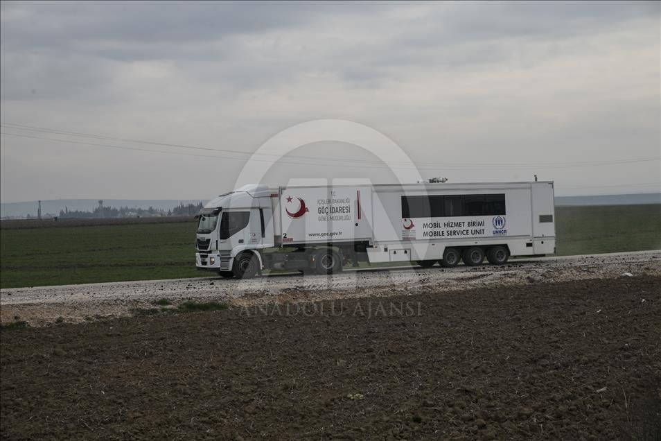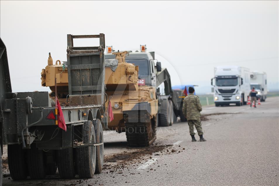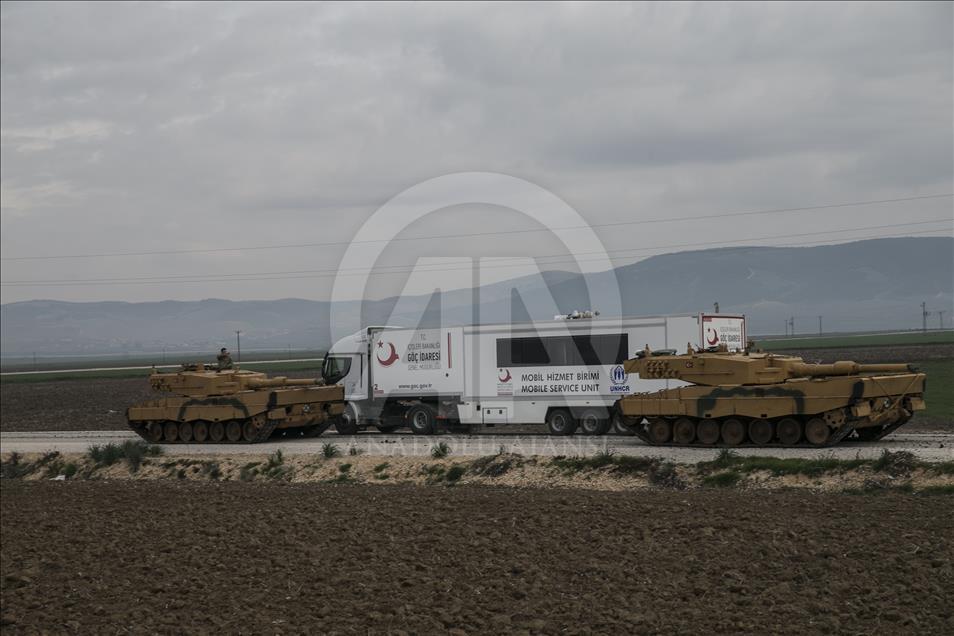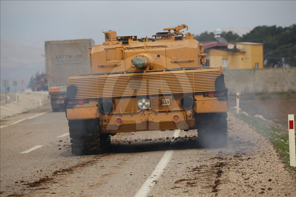 Türk Silahlı Kuvvetlerinin (TSK), Suriye'nin Afrin bölgesinde terör örgütü PYD/PKK tarafından işgal edilen alanlara yönelik dün başlattığı Zeytin Dalı Harekatı kapsamında askeri birliklere takviye olarak gönderilen obüs ve tanklar Hatay'daki sınır birliklerine konuşlandırıldı. Bölgeye mobil hizmet birim aracı da geldi. ( Cem Genco - Anadolu Ajansı )Cem Genco