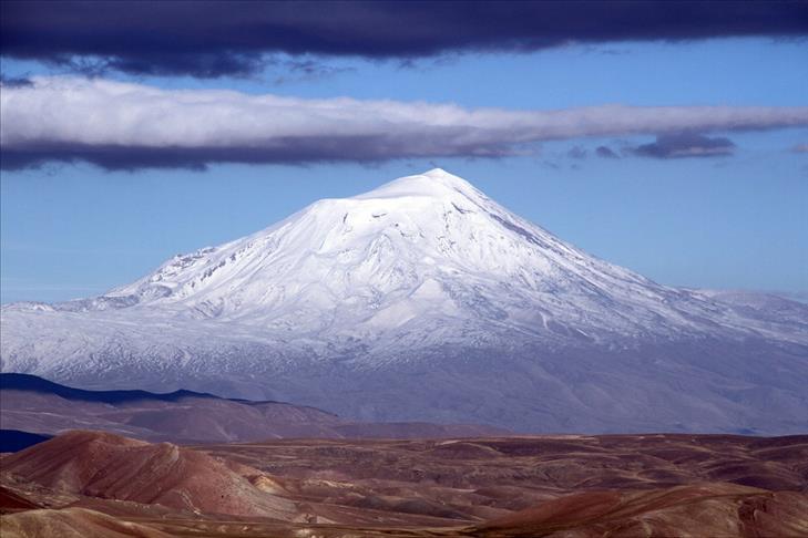 Havaların soğumasıyla Ağrı Dağı'na kar yağdı. 5 bin 137 metrelik yüksekliğiyle Anadolu'nun en yüksek dağı olan Ağrı Dağı, 2 bin 500 metresine kadar yağan kar ile kartpostallık görüntüler oluşturdu. (Selahattin Kaçuru - Anadolu Ajansı)Selahattin Kaçuru