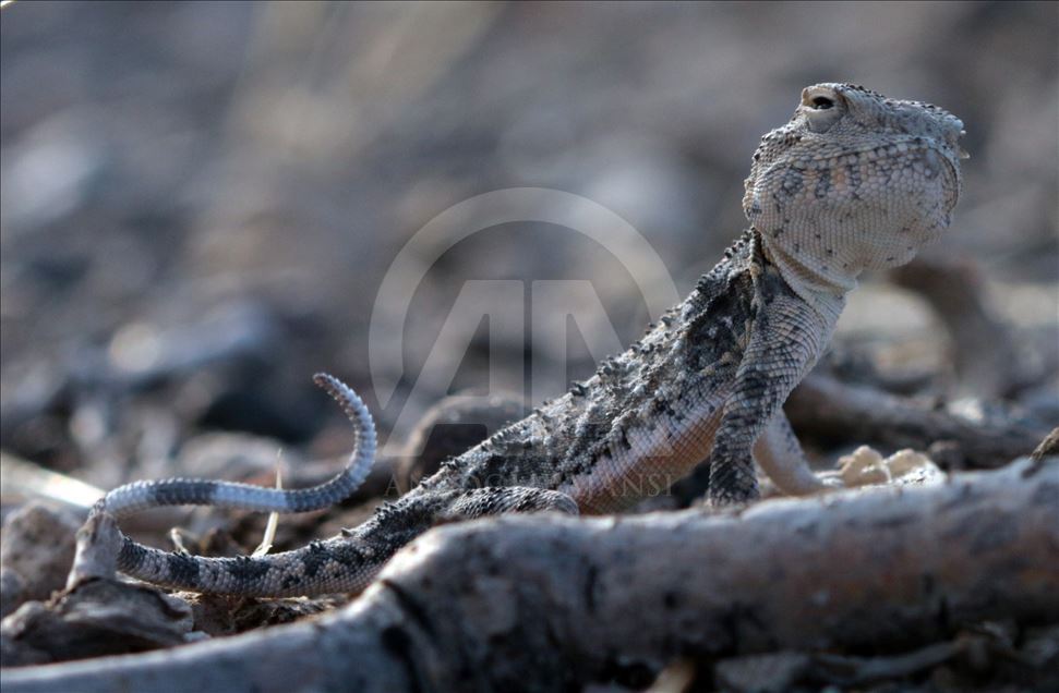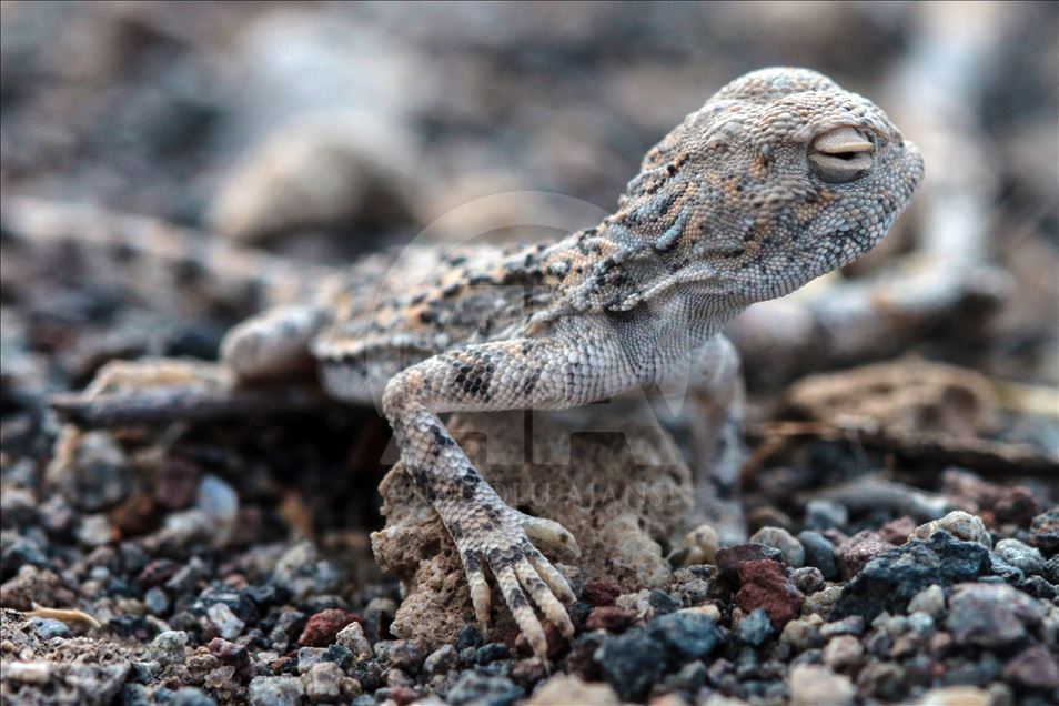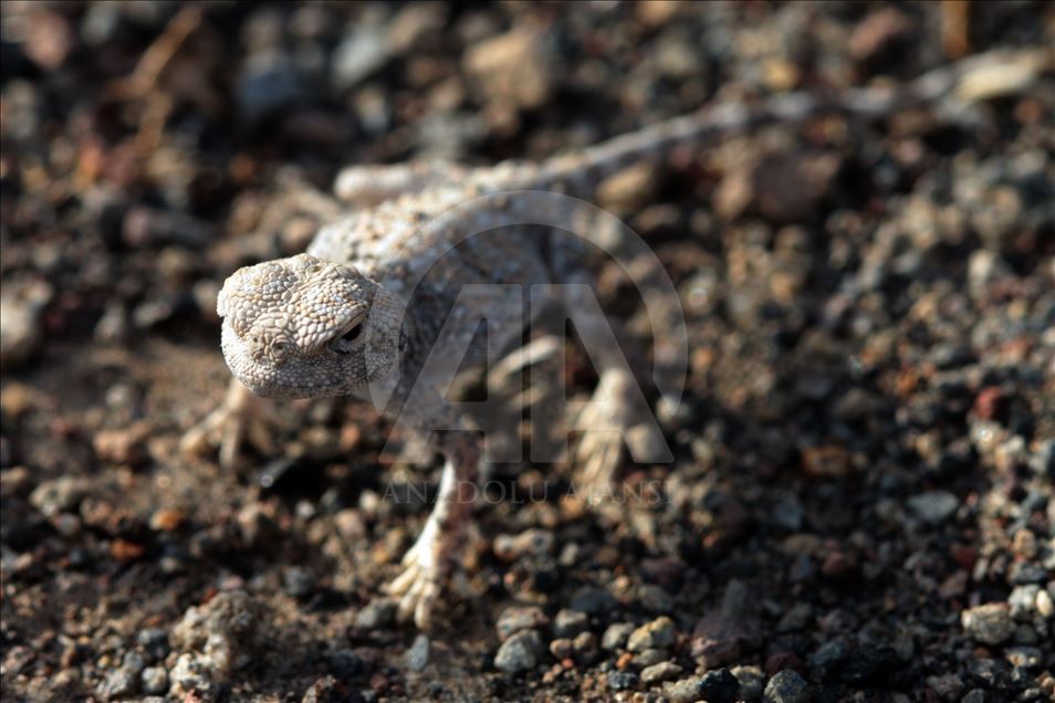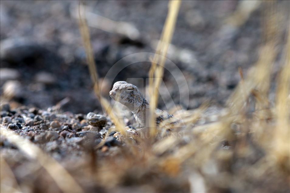Kurak iklimi, bitkisiz toprak örtüsü ve kum fırtınalarıyla bilinen Ağrı Dağı'nın etekleri, nadir görülen ve nesli tükenme riskiyle karşı karşıya olan "topbaş keleri"ne de ev sahipliği yapıyor. ( Hüseyin Yıldız - Anadolu Ajansı )Hüseyin Yıldız