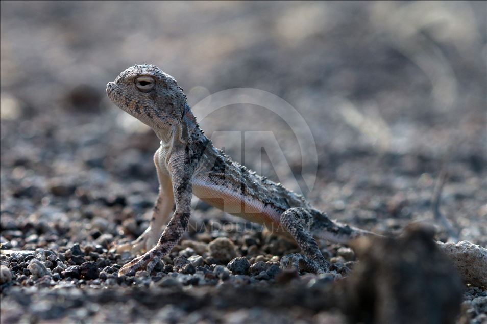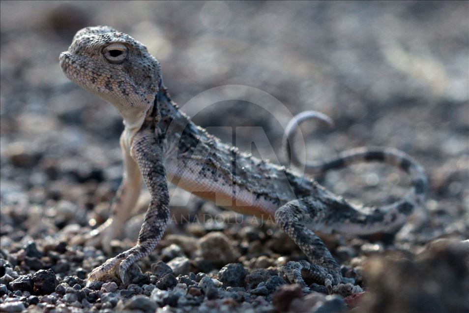 Türkiye'nin en kurak alanlarından Ağrı Dağı eteklerinde dünyaya gelen, nadir görülen ve nesli tükenme riski altında olan "topbaş keleri" yavrularının yaşam mücadelesi başladı. Üreme döneminde bölgedeki kumlara yumurta bırakan topbaş kelerlerinin yavruları, şu sıralar Ağrı Dağı eteklerindeki alanın dört bir yanına yayıldı. ( Hüseyin Yıldız - Anadolu Ajansı )Hüseyin Yıldız