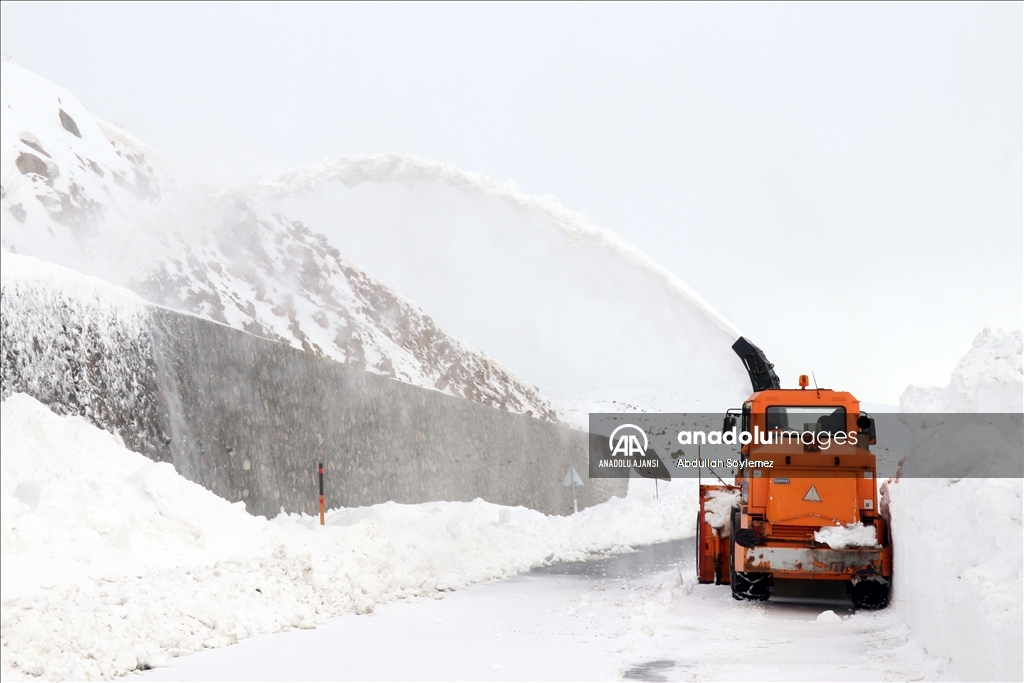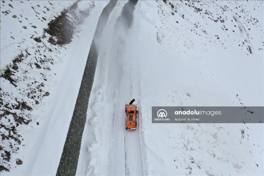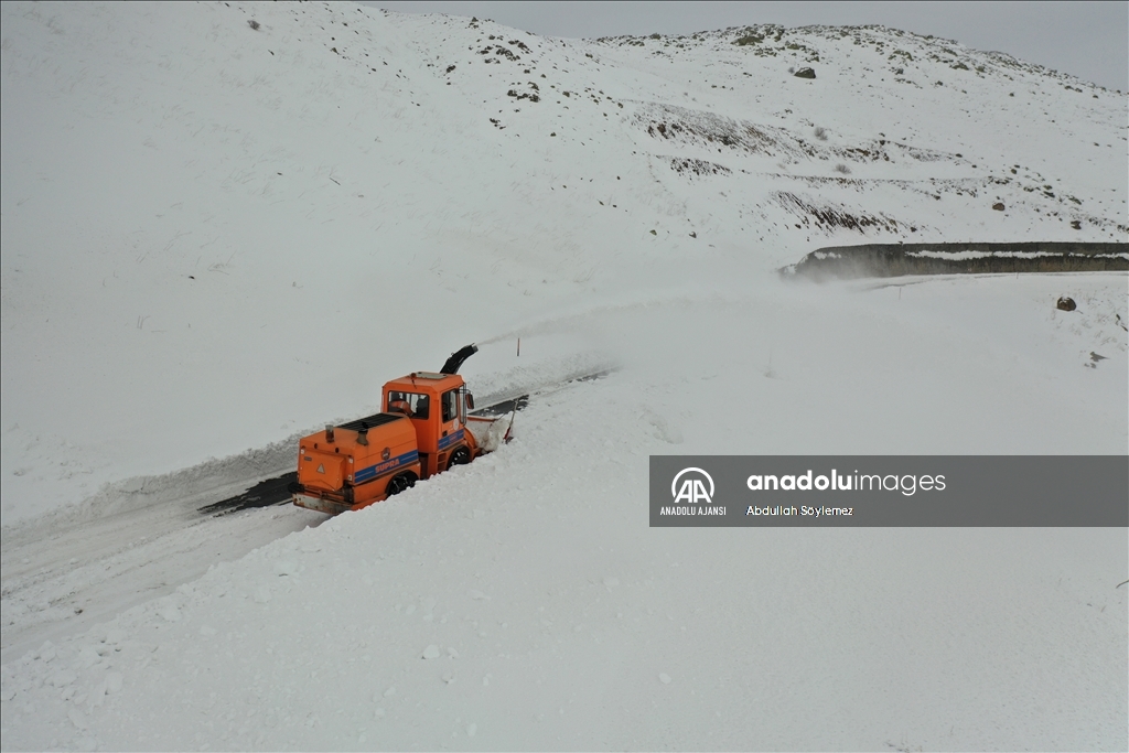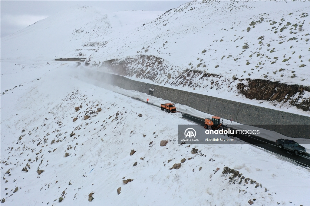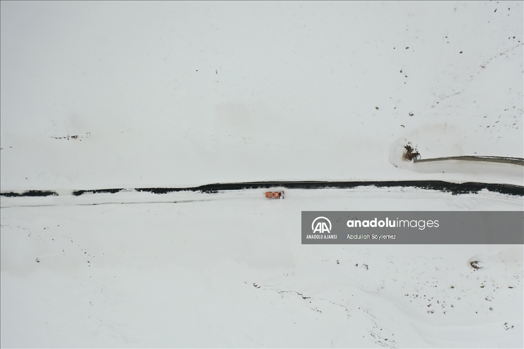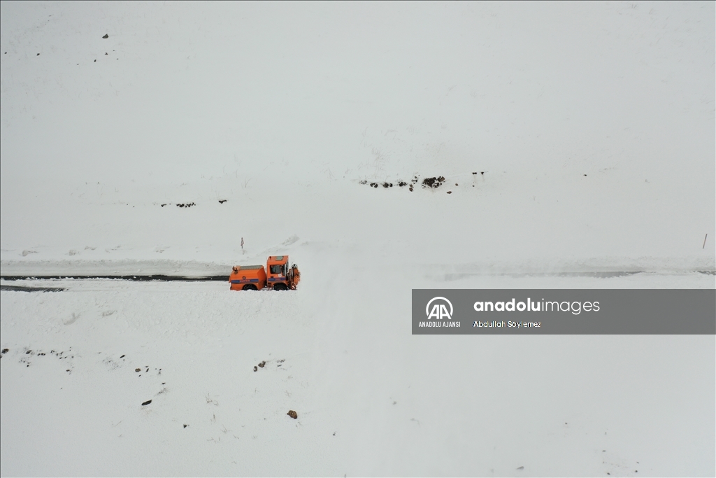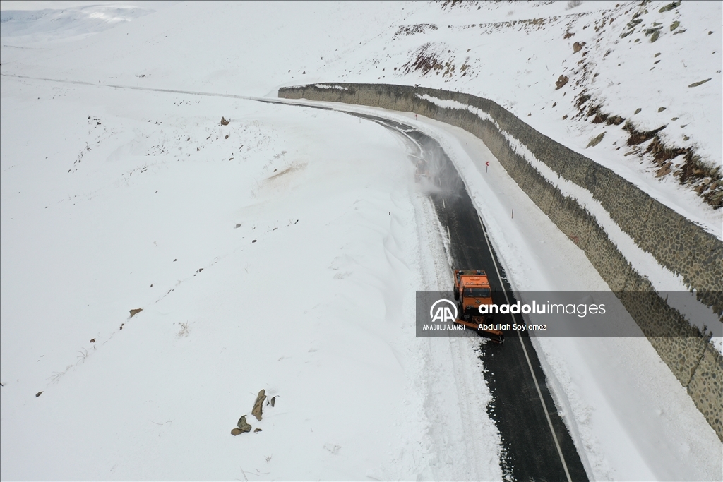Ağrı'da ekipler yolları açık tutmak için 2 bin rakımda karla mücadele ediyor