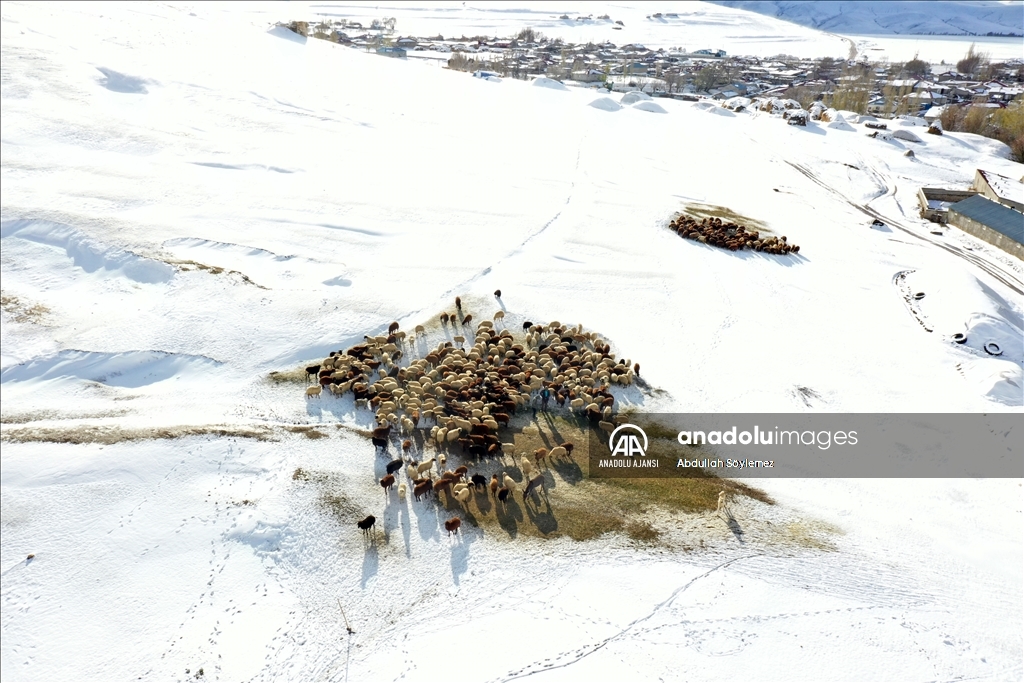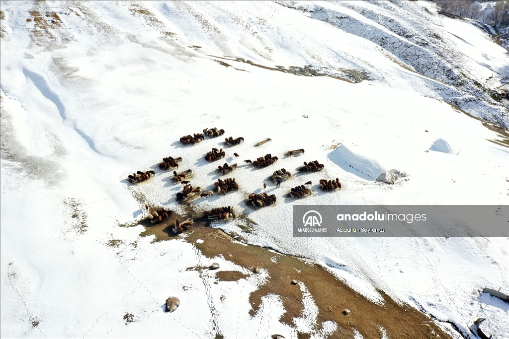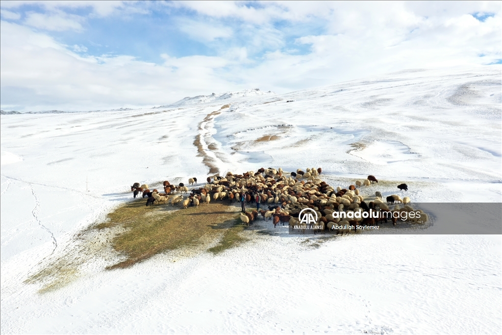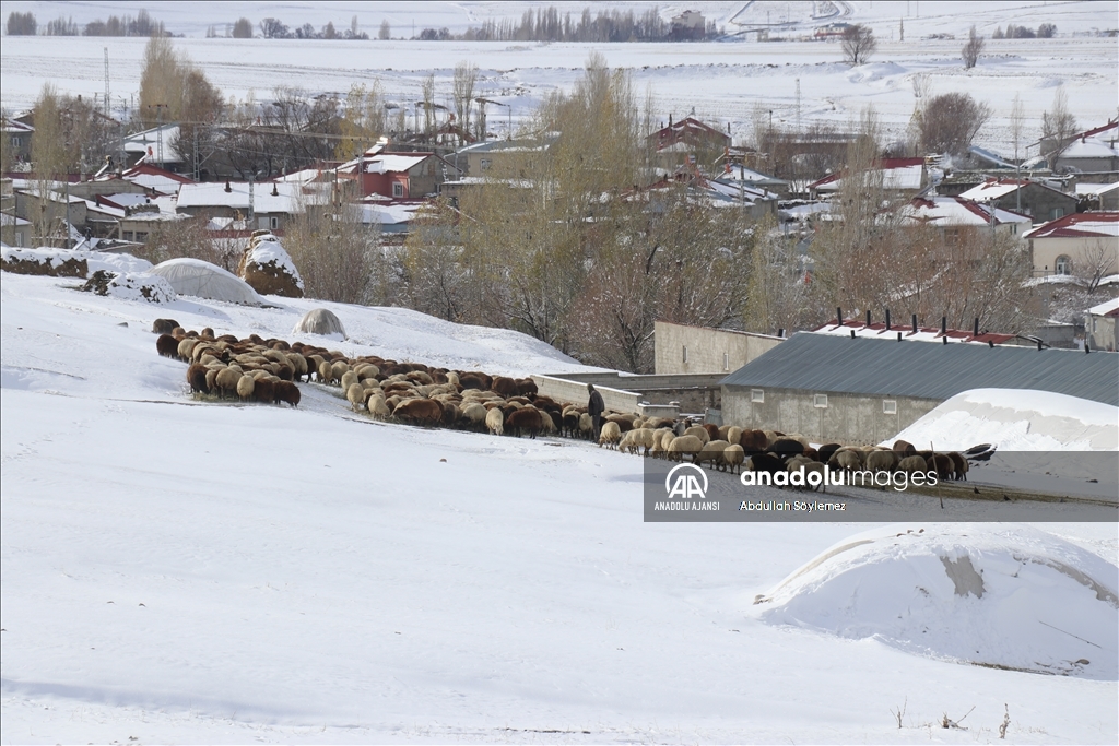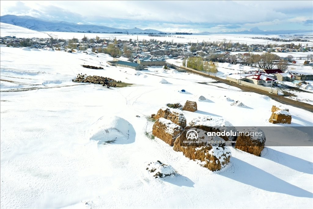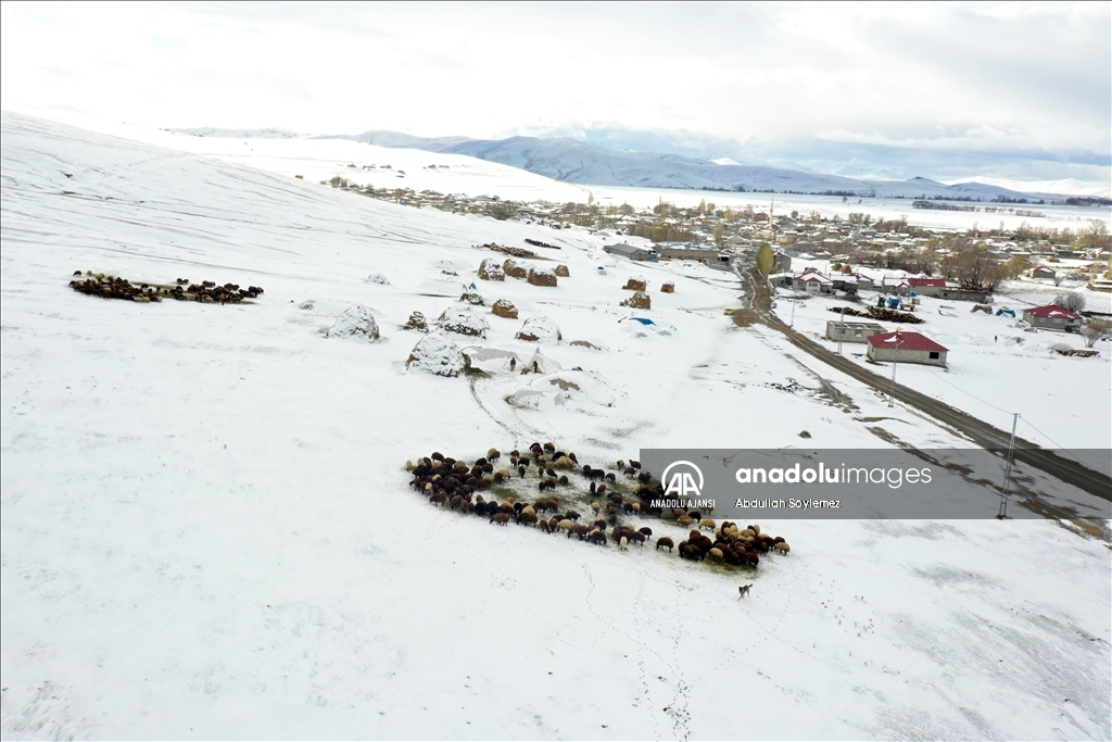 Ağrı'nın köylerinde yaşayan besicilerin, erken yağan kar nedeniyle zorlu kış mesaileri önceki yıllara göre erken başladı. ( Abdullah Söylemez - Anadolu Ajansı )Abdullah Söylemez