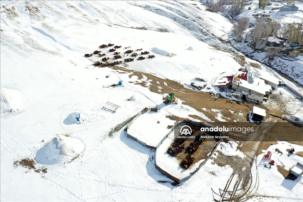 Ağrı'nın köylerinde yaşayan besicilerin, erken yağan kar nedeniyle zorlu kış mesaileri önceki yıllara göre erken başladı.