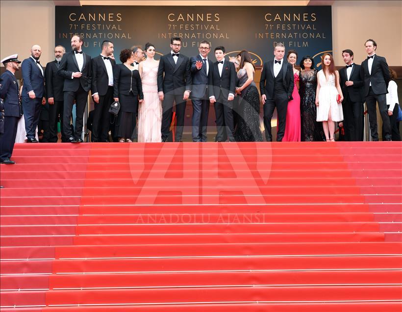 71'inci Cannes Film Festivali çerçevesinde düzenlenen "Ahlat Ağacı" filminin gösterimine, filmin yönetmeni Nuri Bilge Ceylan (sağ 3), oyuncular Doğu Demirkol (sol 4), Hazar Ergüçlü (sol 3), Murat Cemcir (sağ 2), Bennu Yıldırımlar (sağda) ile Ebru Ceylan (sağda) ve yapımcı Zeynep Özbatur Atakan (solda) da katıldı. ( Mustafa Yalçın - Anadolu Ajansı )Mustafa Yalçın