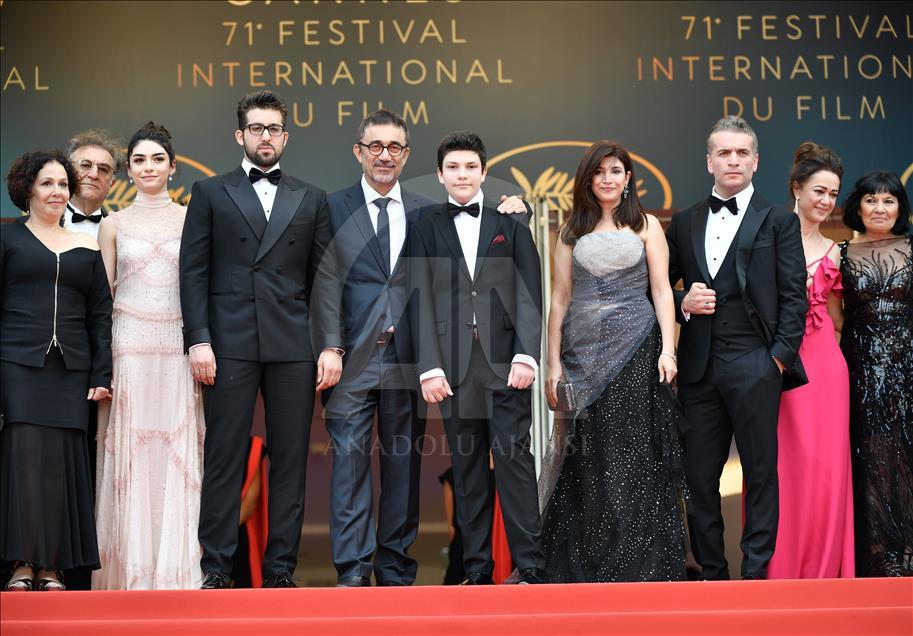 71'inci Cannes Film Festivali çerçevesinde düzenlenen "Ahlat Ağacı" filminin gösterimine, filmin yönetmeni Nuri Bilge Ceylan (sağ 3), oyuncular Doğu Demirkol (sol 2), Hazar Ergüçlü (solda), Murat Cemcir (sağ 2), Bennu Yıldırımlar (sağda) ile Ebru Ceylan (sol 3) da katıldı. ( Mustafa Yalçın - Anadolu Ajansı )Mustafa Yalçın