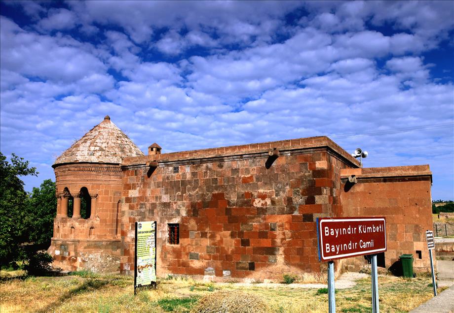 BITLIS'IN AHLAT ILCESINDE MEYDANLIK MEZARLIGININ KUZEYINDE BULUNAN EMIR BAYINDIR KUMBETI, ZARAFETIYLE AHLAT'IN SIMGESI DURUMUNA GELDI. KITABESINDEN, 1481' DE RUSTEM BEY OGLU BAYINDIR ICIN YAPILDIGI ANLASILAN BAYINDIR KUMBETI, KARE KAIDE UZERINDE, SUTUNLAR VE KEMERLERLE GUNEYE ACILAN SILINDIRIK GOVDE VE DISARI DOGRU TASAN BASIK KONIK KULAHIYLA DIGER KUMBETLERDEN AYRILIYOR. (ANADOLU AJANSI - ALI IHSAN OZTURK) (20120820)ALI IHSAN OZTURK