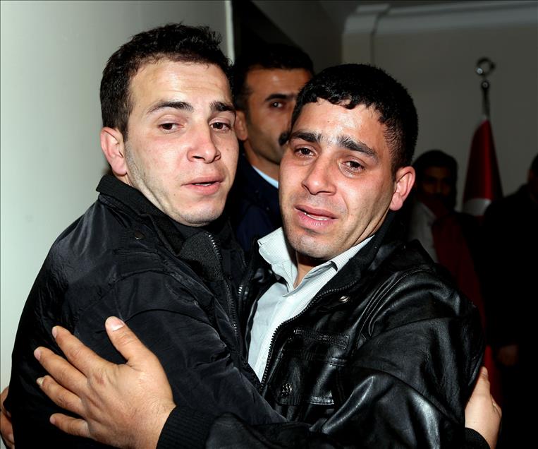 TEROR ORGUTU TARAFINDAN KACIRILAN KAMU GOREVLILERI, HABUR KARA HUDUT KAPISI IDARE AMIRLIGI'NDE AILELERIYLE BULUSTU. KAYMAKAM ADAYI KENAN ERENOGLU (ORTADA), ABLASI VE ENISTESIYLE BULUSTU. (ANADOLU AJANSI - MEHMET KAMAN) (20130313)