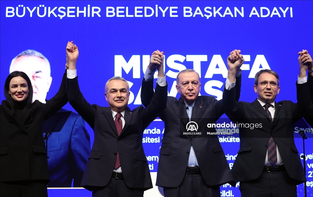 Cumhurbaşkanı ve AK Parti Genel Başkanı Recep Tayyip Erdoğan, Haliç Kongre Merkezi'nde düzenlenen AK Parti Aday Tanıtım Toplantısı'na katıldı. Cumhurbaşkanı Erdoğan, AK Parti'nin Aydın Büyükşehir Belediye Başkan Adayı olarak açıkladığı Mustafa Savaş'ı sahneye davet ederek partilileri selamladı. ( Mustafa Kamacı - Anadolu Ajansı )Mustafa Kamacı