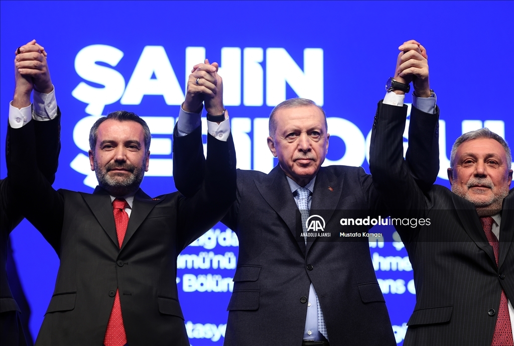 Cumhurbaşkanı ve AK Parti Genel Başkanı Recep Tayyip Erdoğan, Haliç Kongre Merkezi'nde düzenlenen AK Parti Aday Tanıtım Toplantısı'na katıldı. Cumhurbaşkanı Erdoğan, AK Parti'nin Elazığ Belediye Başkan Adayı olarak açıkladığı Şahin Şerifoğulları'nı sahneye davet ederek partilileri selamladı. ( Mustafa Kamacı - Anadolu Ajansı )Mustafa Kamacı