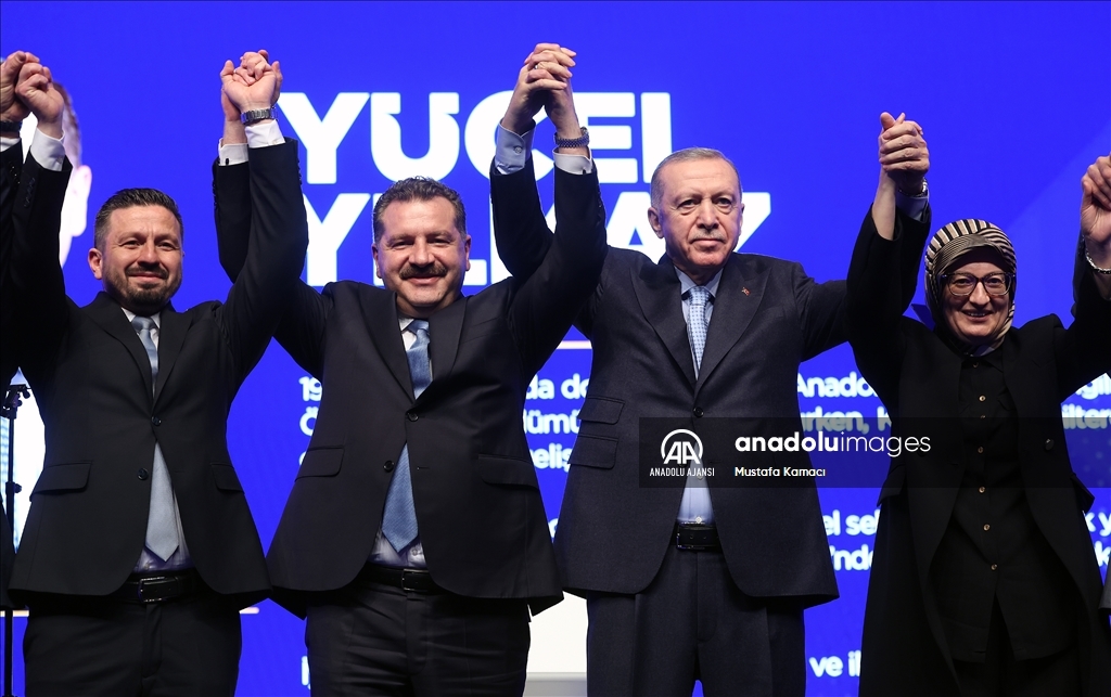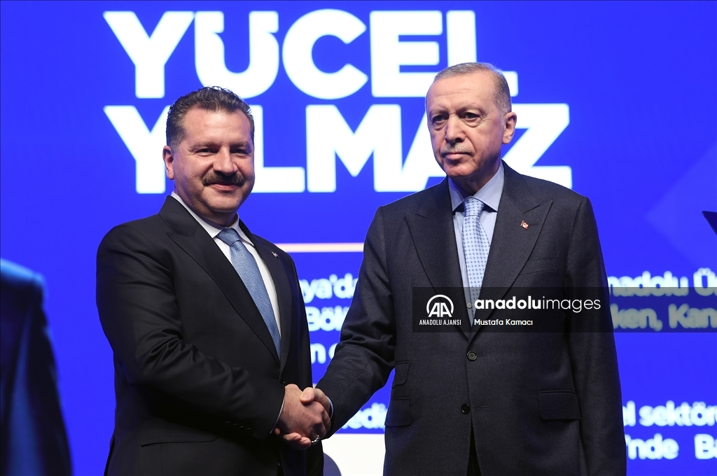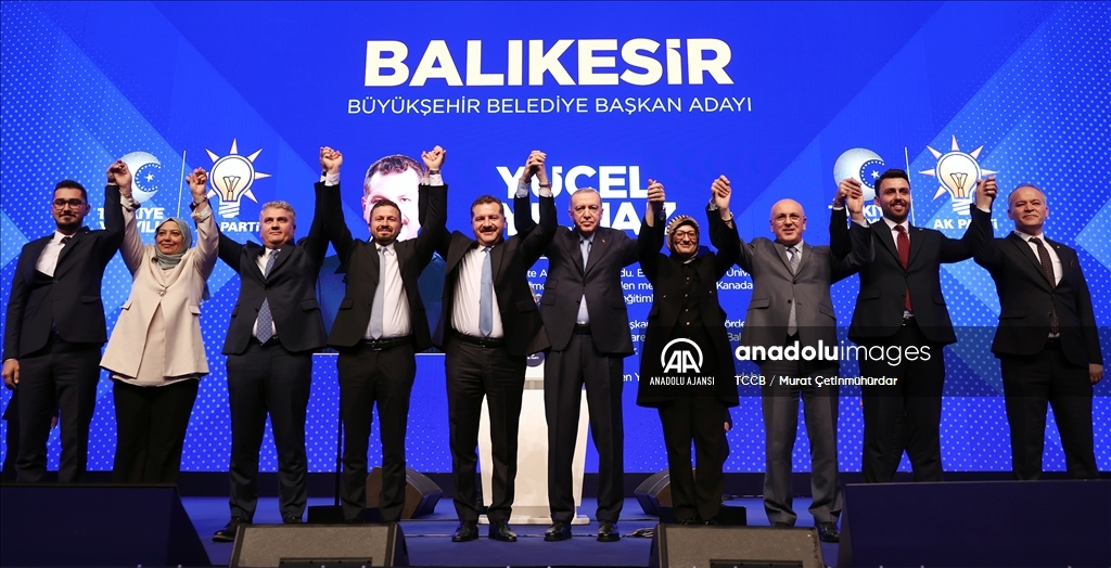 Cumhurbaşkanı ve AK Parti Genel Başkanı Recep Tayyip Erdoğan, Haliç Kongre Merkezi'nde düzenlenen AK Parti Aday Tanıtım Toplantısı'na katıldı. Cumhurbaşkanı Erdoğan, AK Parti'nin Balıkesir Büyükşehir Belediye Başkan Adayı olarak açıkladığı Yücel Yılmaz'ı sahneye davet ederek partilileri selamladı. ( TCCB / Murat Çetinmühürdar - Anadolu Ajansı )TCCB / Murat Çetinmühürdar