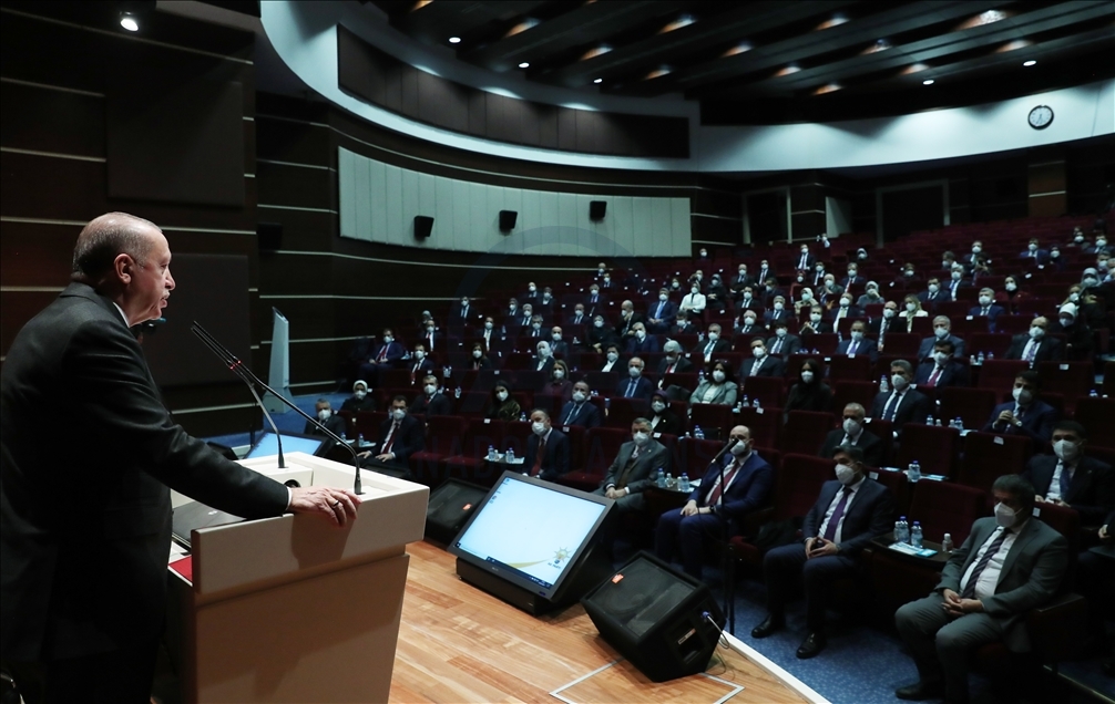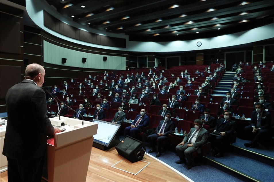 AK Parti Merkez Karar ve Yönetim Kurulu (MKYK), Cumhurbaşkanı ve AK Parti Genel Başkanı Recep Tayyip Erdoğan başkanlığında toplandı. Cumhurbaşkanı Erdoğan, toplantıda konuşma yaptı. ( TCCB/Murat Çetinmühürdar - Anadolu Ajansı )TCCB/Murat Çetinmühürdar