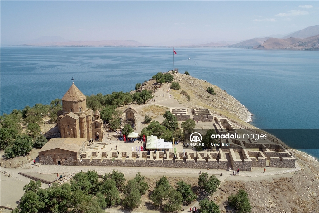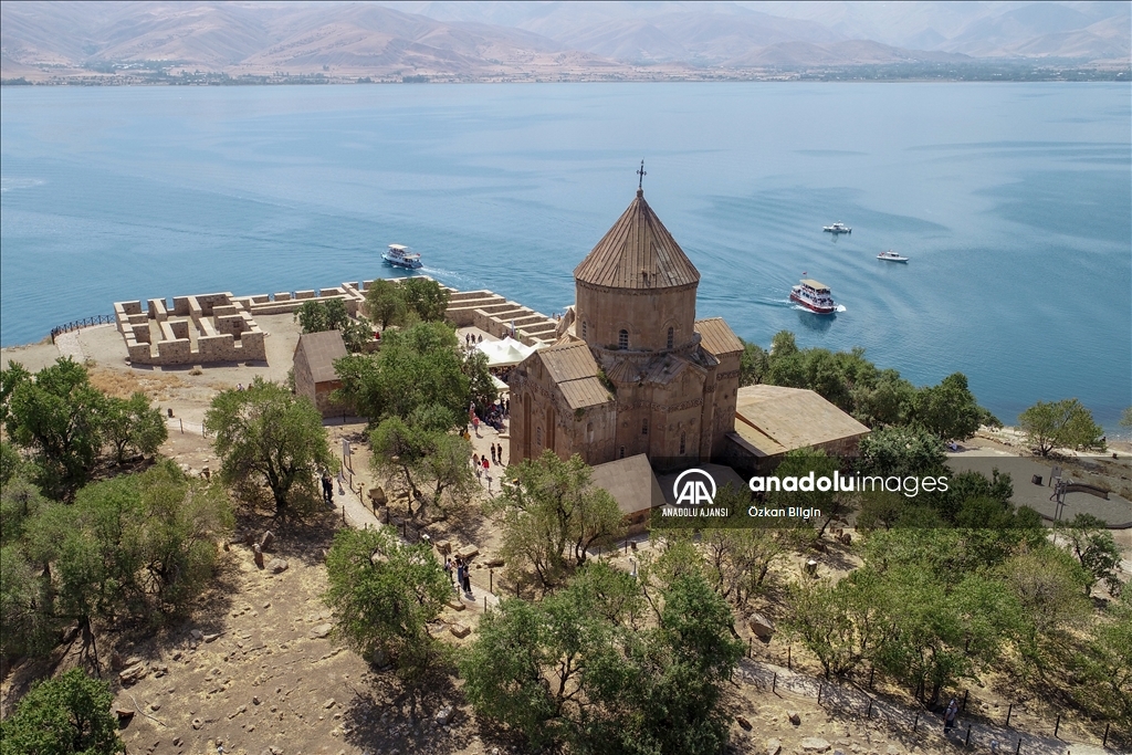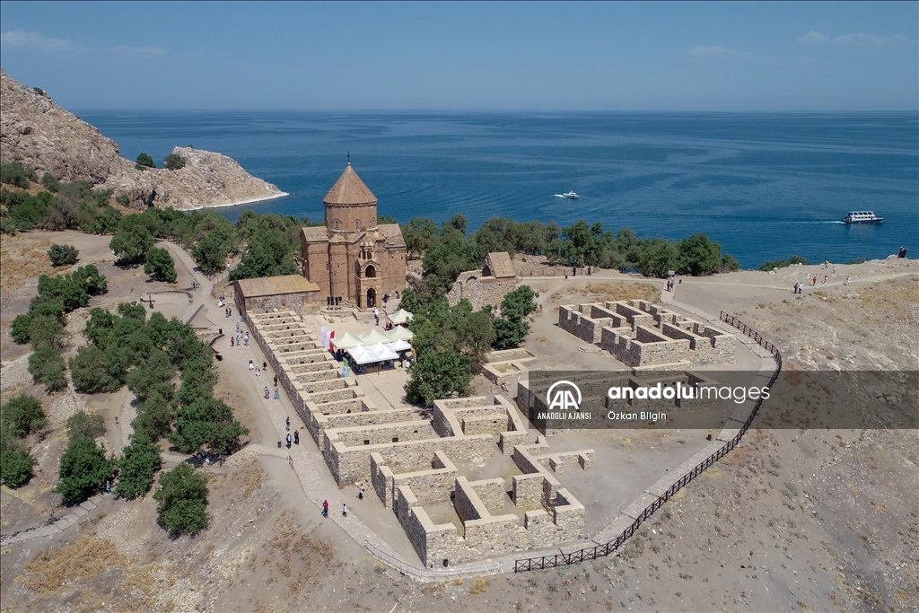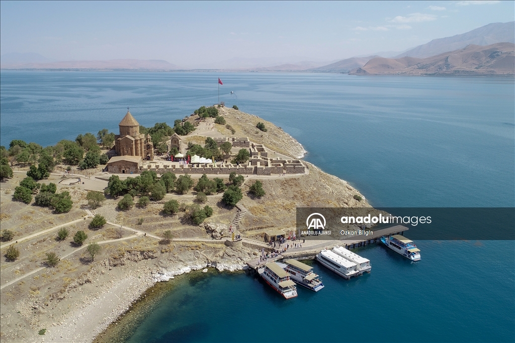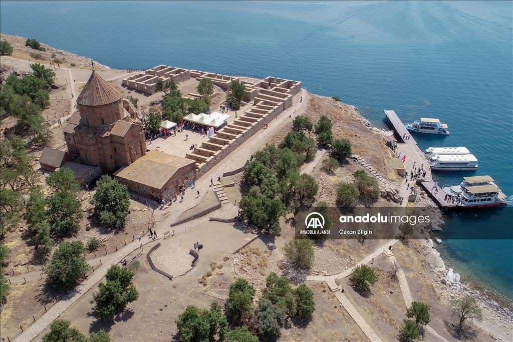 Kültür ve Turizm Bakanlığının özel izniyle yılda bir kez ibadete açılan Van Gölü'ndeki Akdamar Adası'nda bulunan kilisede bu yıl 10.'su düzenlenen ayin başladı.