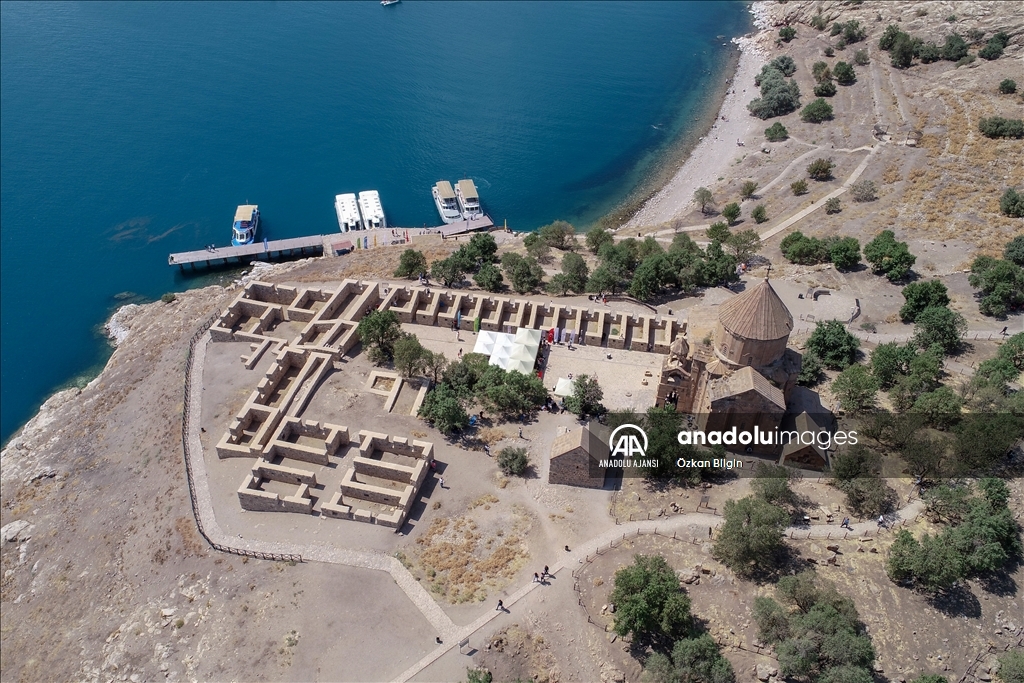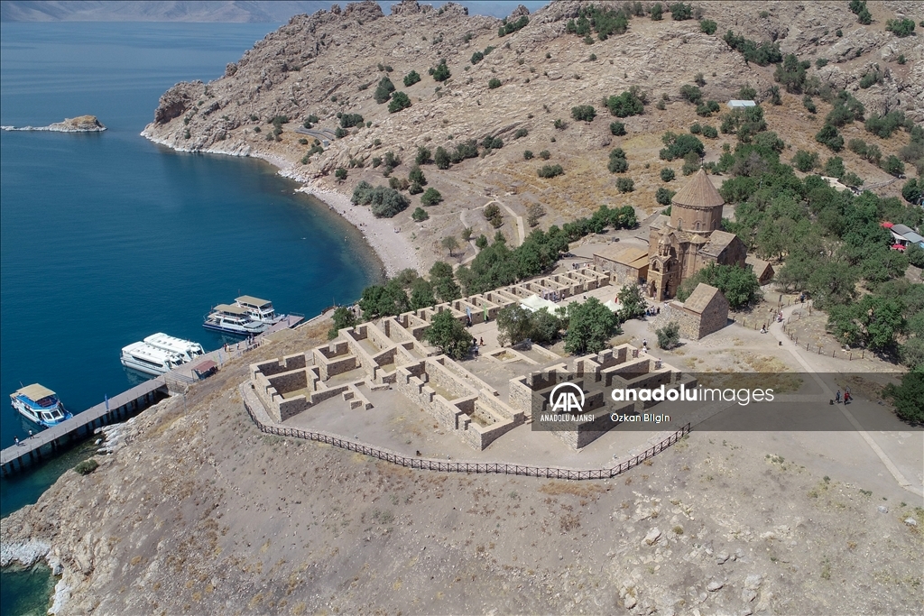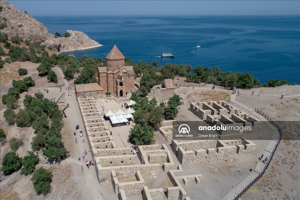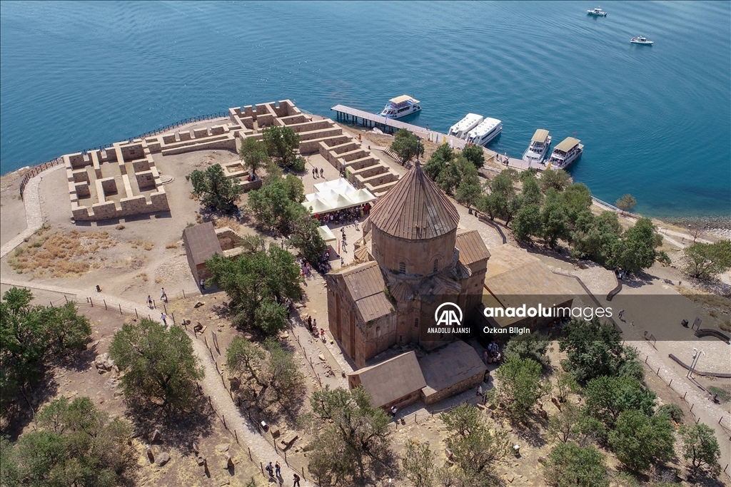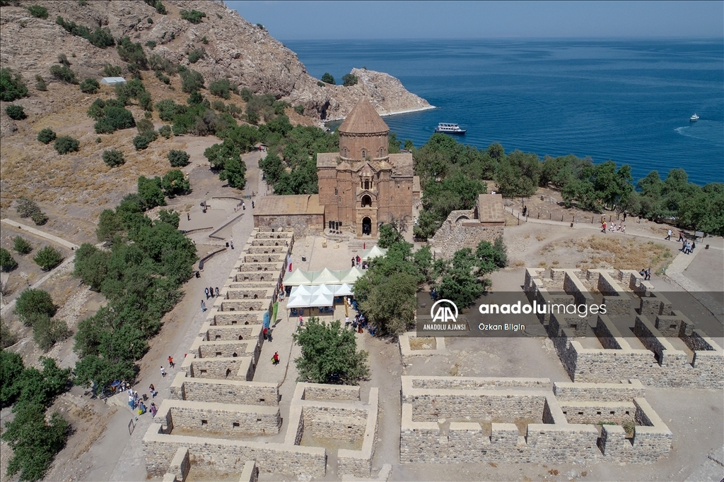 Kültür ve Turizm Bakanlığının özel izniyle yılda bir kez ibadete açılan Van Gölü'ndeki Akdamar Adası'nda bulunan kilisede bu yıl 10.'su düzenlenen ayin başladı.