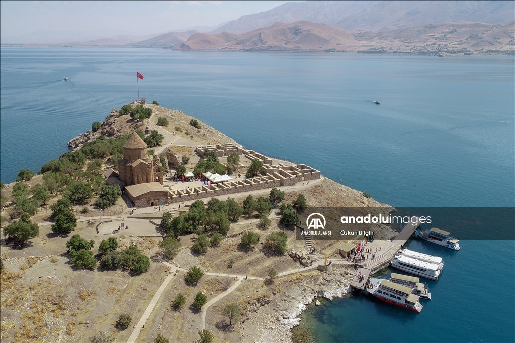 Kültür ve Turizm Bakanlığının özel izniyle yılda bir kez ibadete açılan Van Gölü'ndeki Akdamar Adası'nda bulunan kilisede bu yıl 10'uncusu düzenlenen ayin başladı. ( Özkan Bilgin - Anadolu Ajansı )Özkan Bilgin