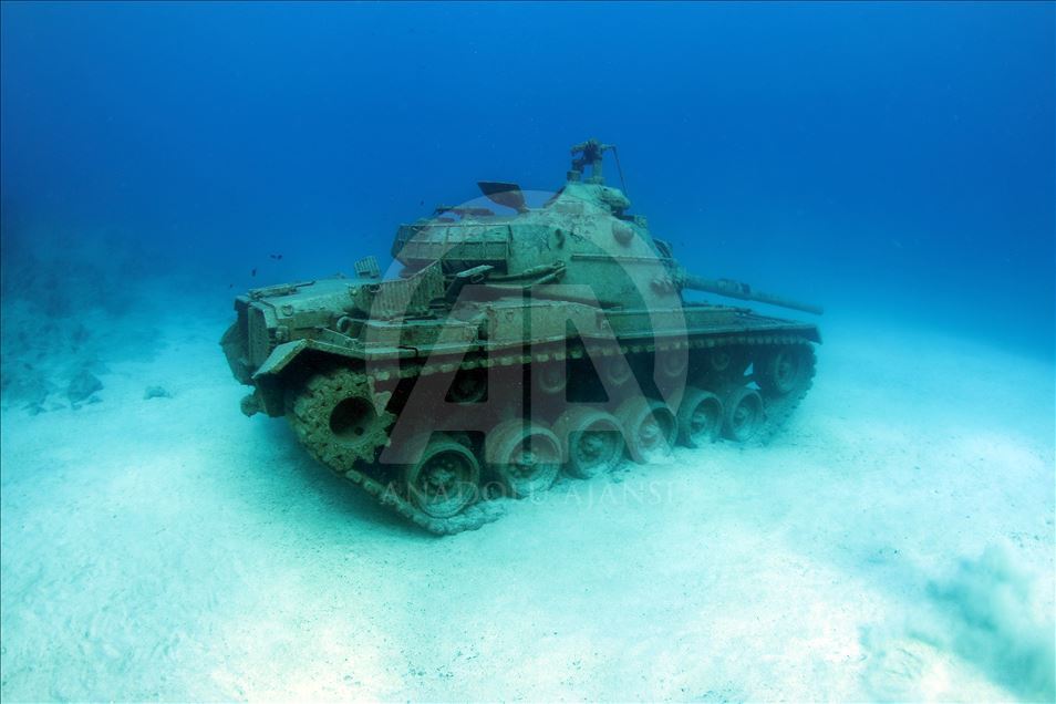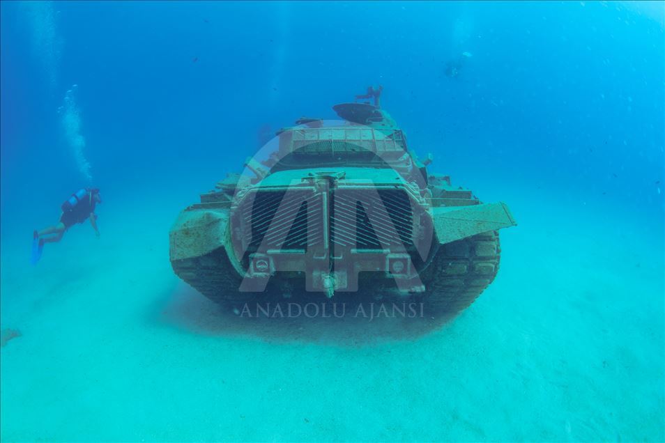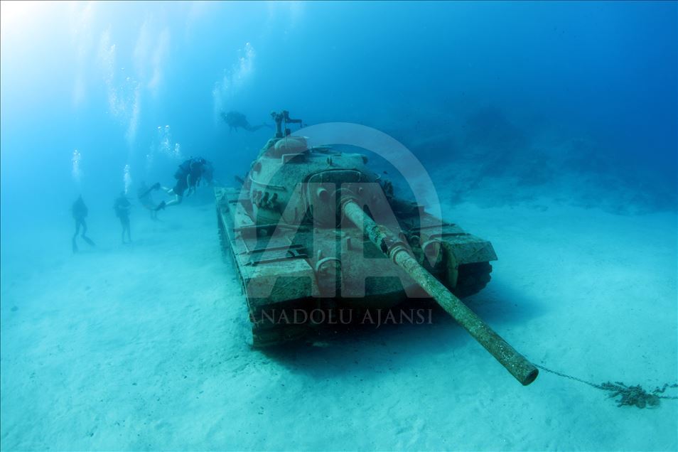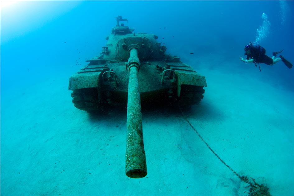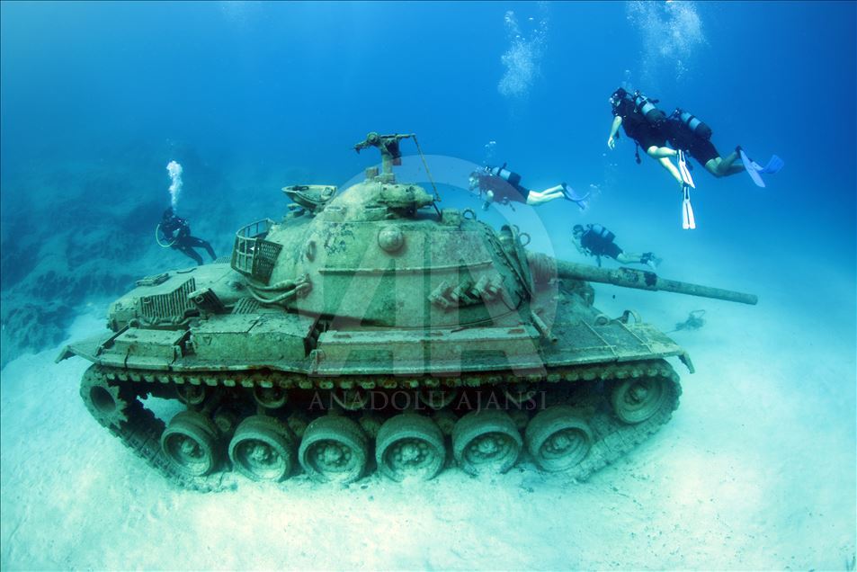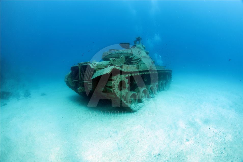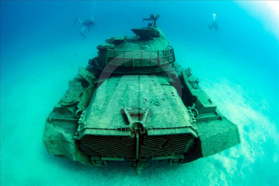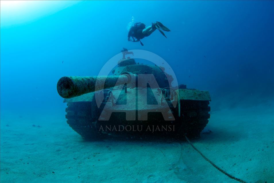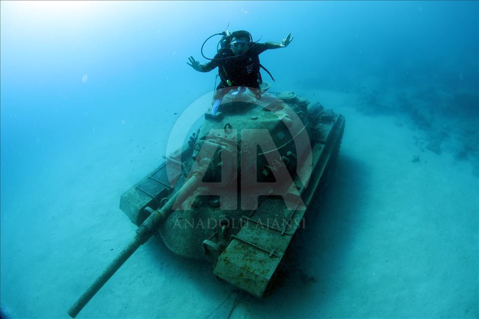 Antalya'da Akdeniz'in derinliklerine batırılan 45 tonluk eski tank, dalgıçların ve su altı meraklıların ilgi odağı oluyor. İki yılı aşkın bir süredir burada bulunan devasa tank, birbirinden farklı su altı güzelliklerini barındıran Kaş'ın dalış turizmine katkı sunuyor.