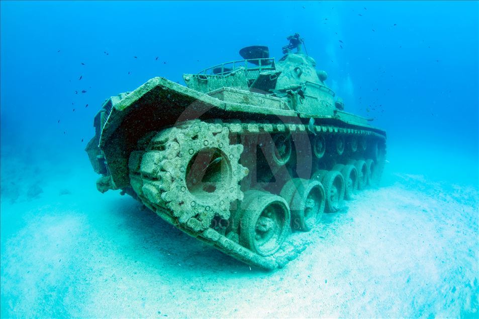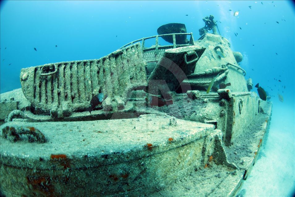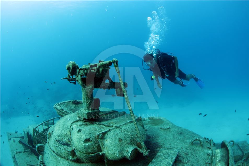 Akdeniz'in derinliklerindeki tank ilgi görüyor