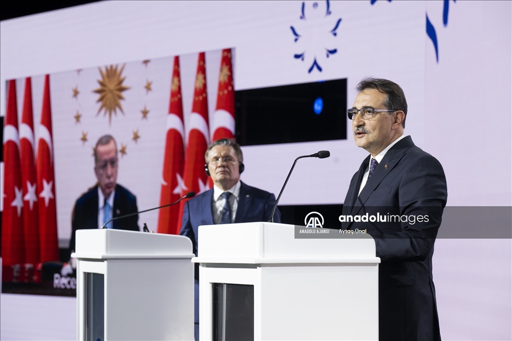 Mersin'de, Akkuyu Nükleer Güç Santrali İlk Nükleer Yakıt Getirme Töreni gerçekleştirildi. Enerji ve Tabii Kaynaklar Bakanı Fatih Dönmez (sağda) ve ROSATOM Başkanı Alexey Likhachev (solda), burada konuşma yaptı. ( Aytaç Ünal - Anadolu Ajansı )Aytaç Ünal