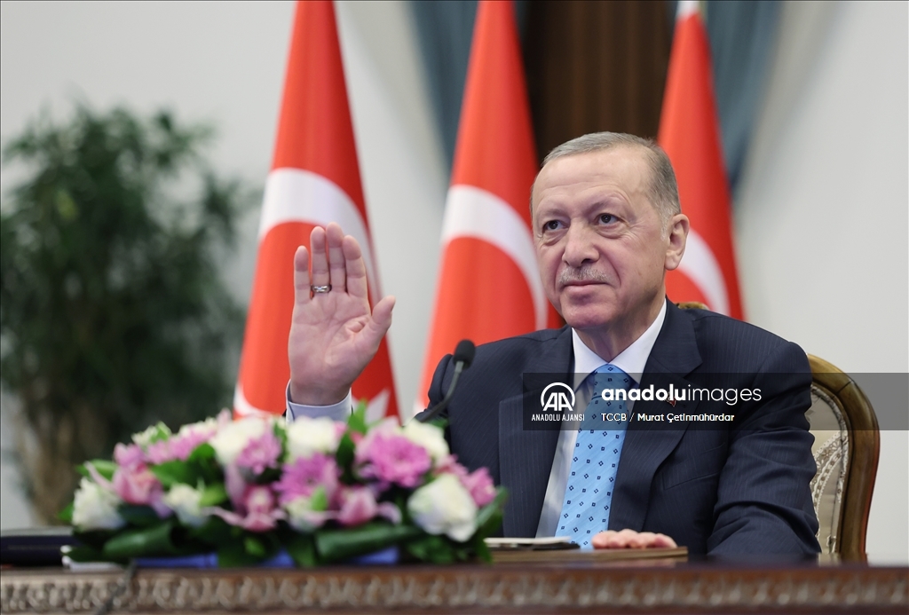 Cumhurbaşkanı Recep Tayyip Erdoğan, Cumhurbaşkanlığı Külliyesi'nden Akkuyu Nükleer Güç Santrali İlk Nükleer Yakıt Getirme Töreni'ne canlı bağlantı ile katıldı. ( TCCB / Murat Çetinmühürdar - Anadolu Ajansı )TCCB / Murat Çetinmühürdar