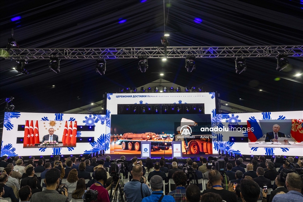 Cumhurbaşkanı Recep Tayyip Erdoğan ve Rusya Devlet Başkanı Vladimir Putin'in canlı bağlantıyla katıldığı Akkuyu NGS İlk Nükleer Yakıt Getirme Töreni'nde, ilk nükleer yakıtın gelmesiyle Akkuyu NGS "nükleer tesis" statüsüne kavuştu. ( Serkan Avci - Anadolu Ajansı )Serkan Avci