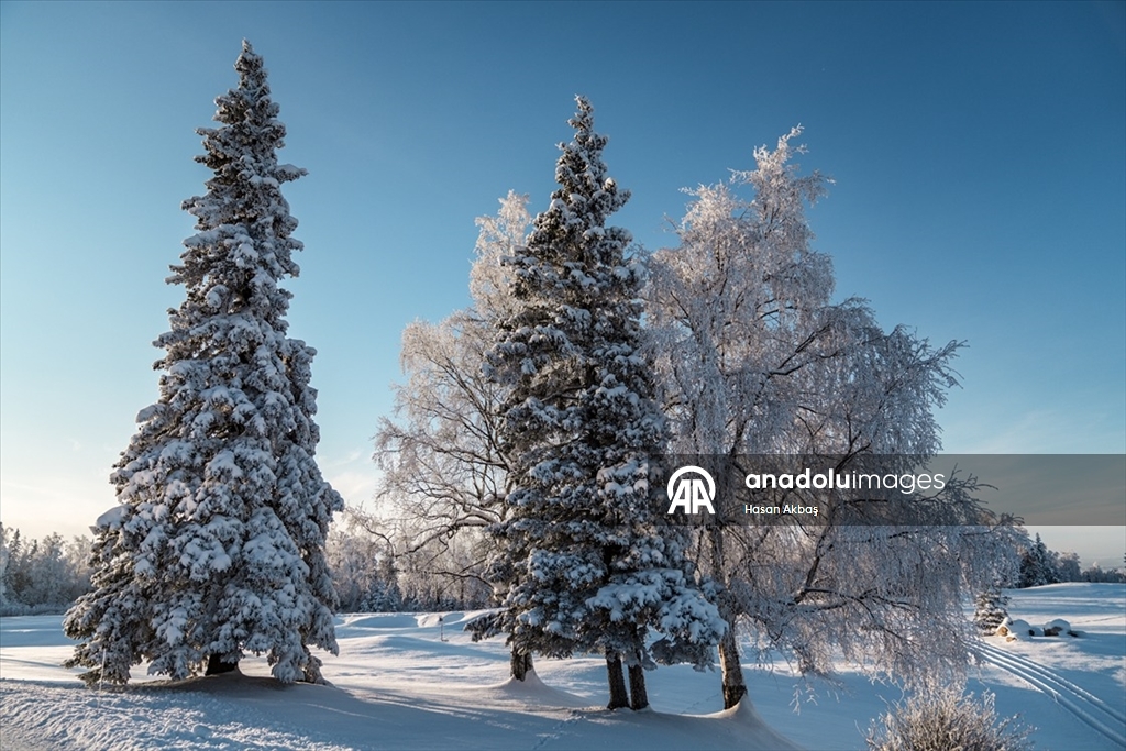 Karla kaplanan ormanlar, dağlar ve vadiler sabahın ilk ışıklarıyla birlikte Alaska kışının sessizliğini ve dinginliğini yansıtıyor. Hasan Akbaş